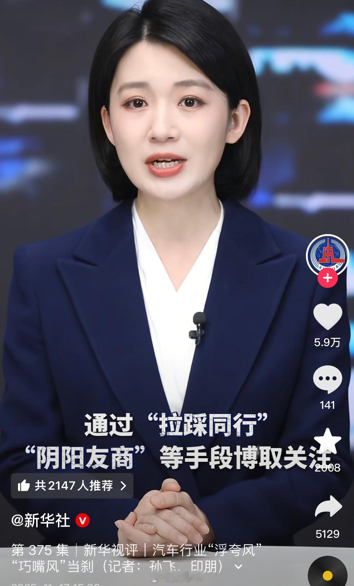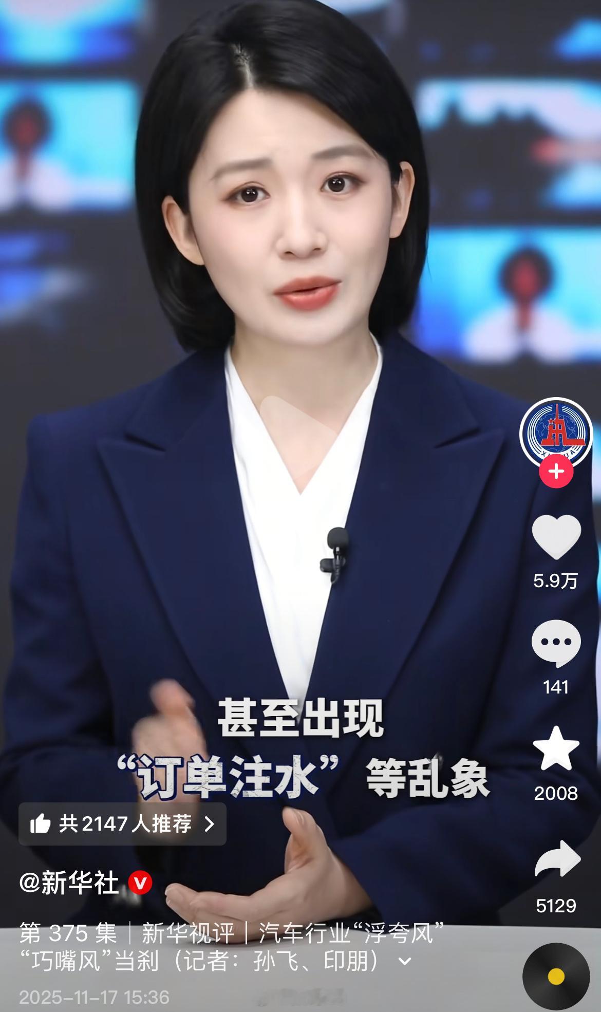 新华社点名汽车行业部分乱象,订单注水、通过拉踩同行、阴阳友商等。