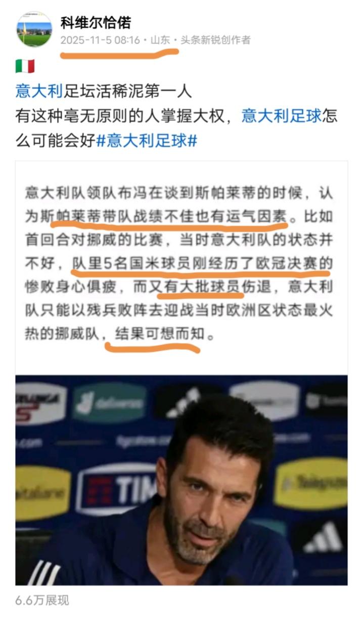 🇮🇹 再次打肿布冯这种活稀泥佬的脸 这种不负责任信口开河的管理者怎么可能带出一支铁血之师