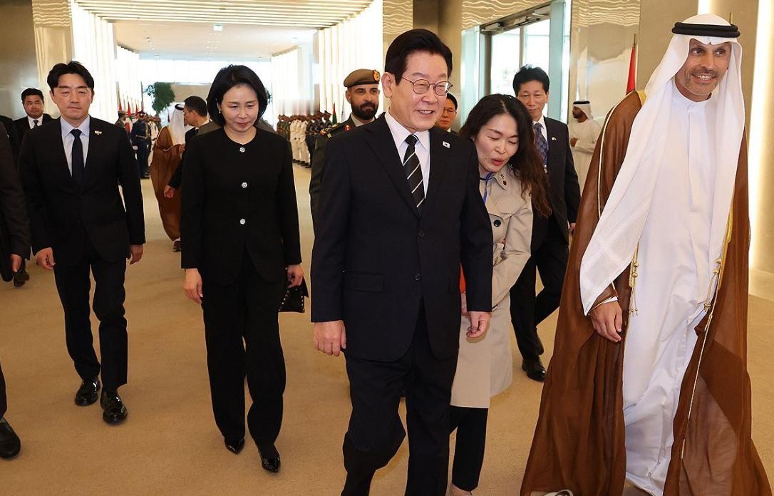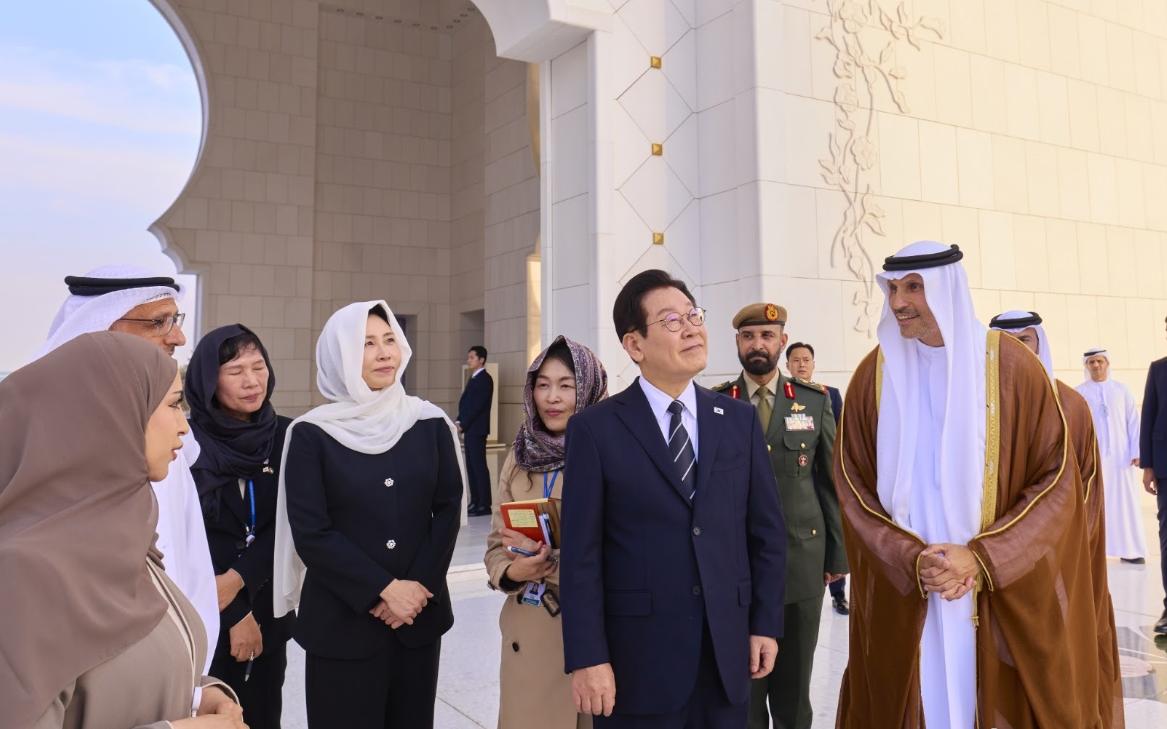 李在明夫人抵达阿联酋后入乡随俗,头上裹着白色丝巾,气质都变了!11月17日金惠景到了阿联酋后换风格,虽说没有穿阿联酋的传统服饰,但头上裹着丝巾变得好温柔。 当天她穿着一身黑色套装,显得皮肤白皙还干练,原本没有什么个性,不过搭配一条白色丝巾就不一样了,气质瞬间改变不说,整个人也变得年轻了。 看来夫人金惠景到阿联酋也是做足了准备,没有时间换衣服,就先从“头”开始,这样就能很好的融入当地的生活,拉近和阿联酋人的感情。