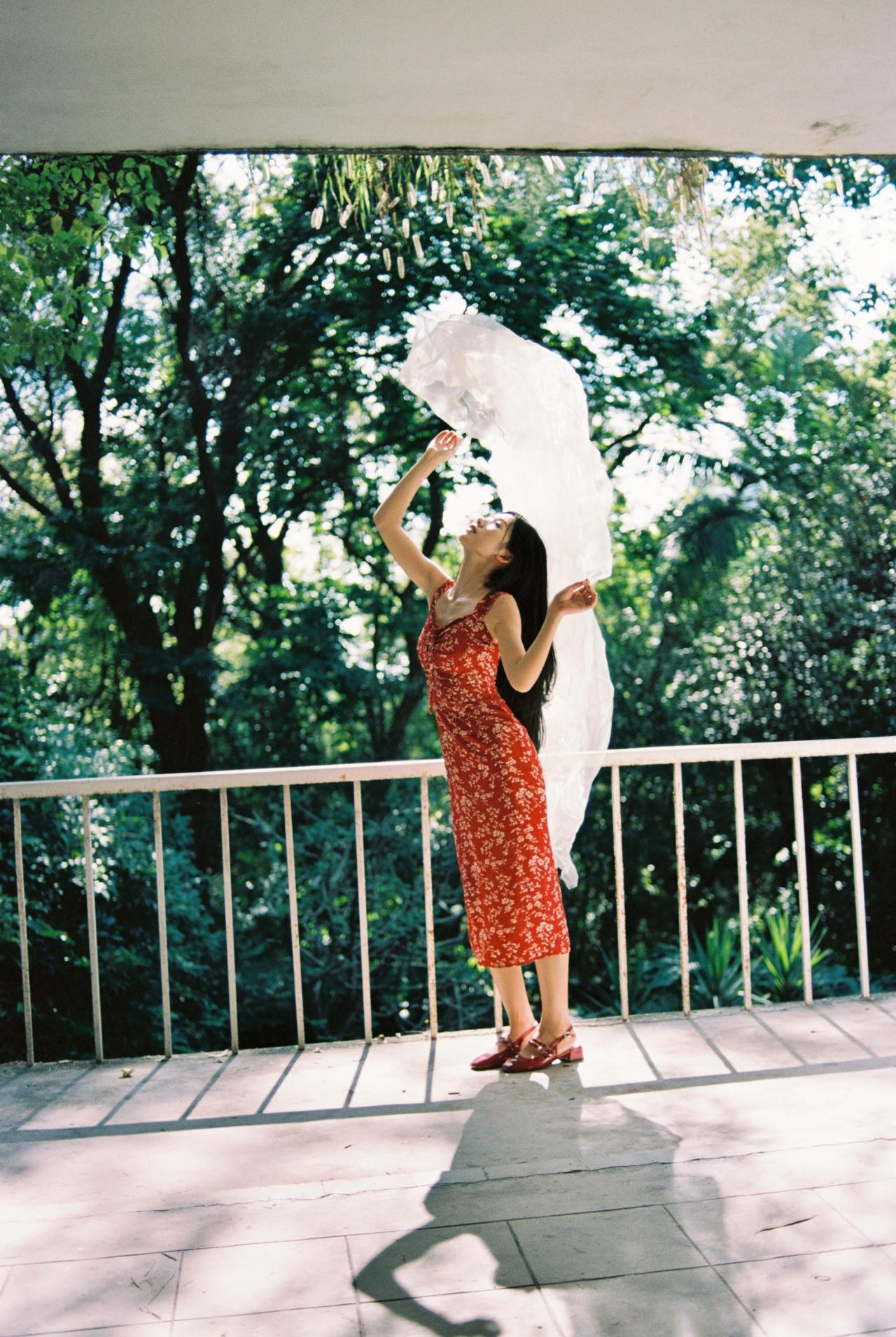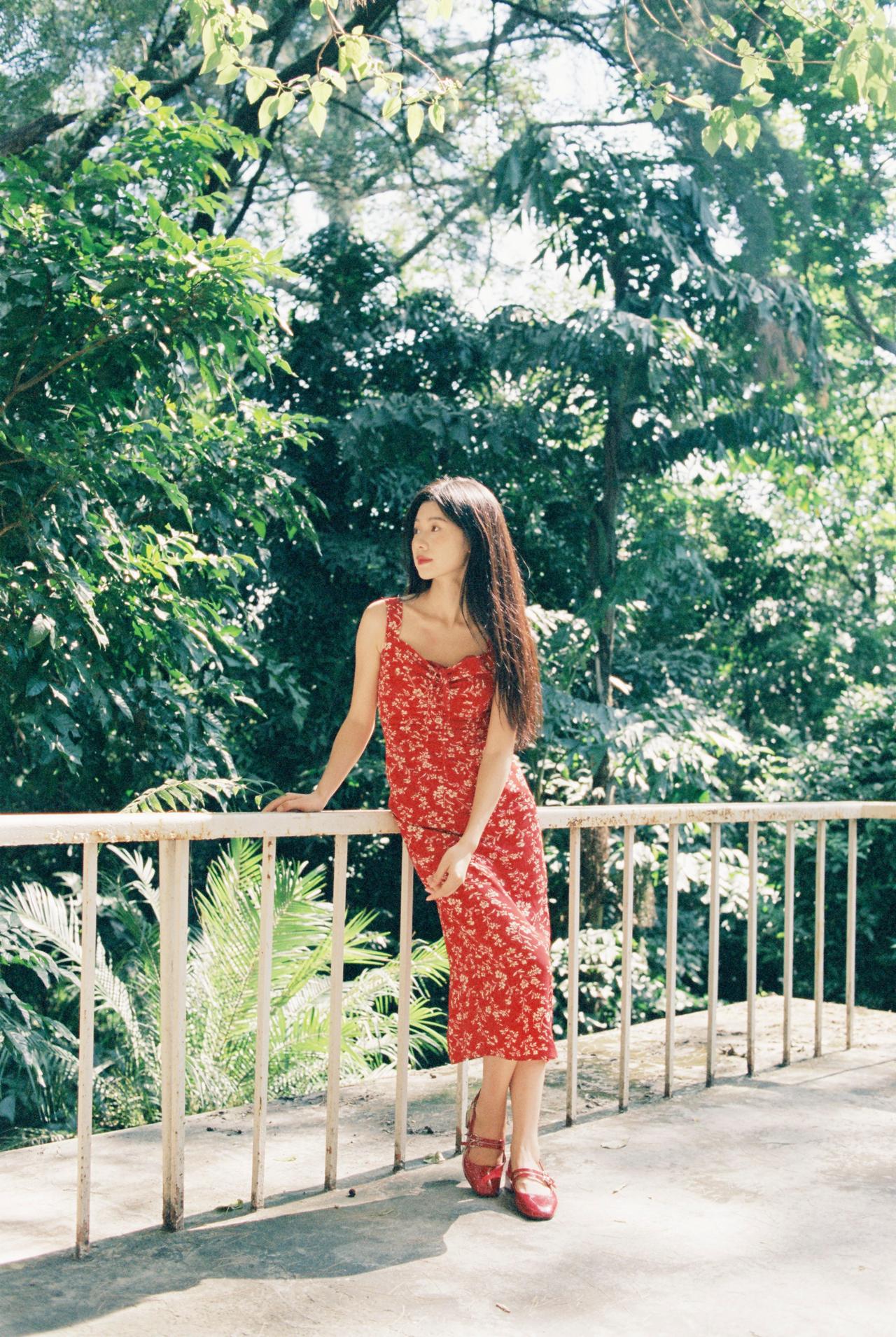 《红裙与风的私语》 白纱揉碎夏光 漏进她鬓边的长 红裙是绽开的焰 裹着枝桠间的香 她指尖轻碰风的轮廓 眼神漫向云的方向 裙摆垂落时 连蝉鸣都轻得像句诗行秋阳私语