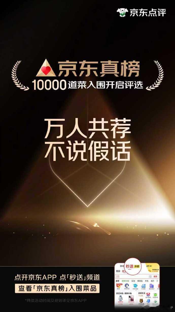京东真榜重磅来袭,10000道菜入围开启评选!以“永不商业化”破局虚假点评乱象,补全京东本地生活闭环,为用户、中小商家赋能,激活行业竞争新生态。