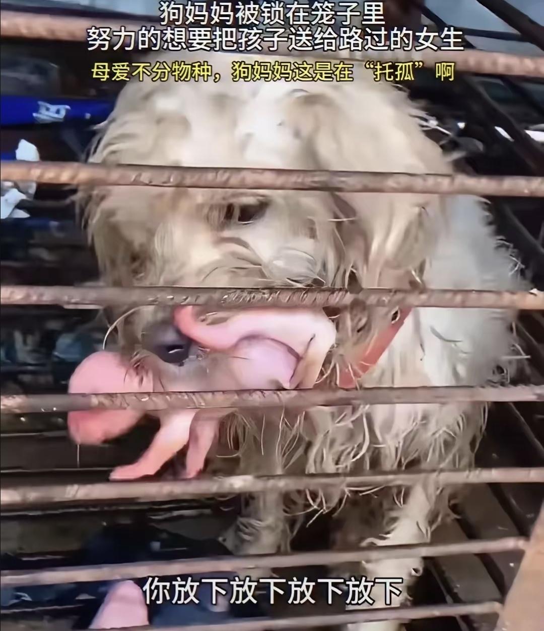 那天有俩姑娘去菜场买菜准备涮火锅,走到卖狗肉的地方看见铁笼里趴着只母狗。笼子里还有血水,旁边有只刚出生的小狗崽,看样子母狗刚生完。 母狗一见人过来就急得直叫,用嘴叼着小狗往姑娘们这边送。可能是知道自个儿要被宰了,就想把孩子托付出去。俩人看着都哭了。 直接商量卖家要了这两条狗,花了两千多。赶紧送到宠物医院做了检查和手术,把母狗和小狗都救了。后来养着了,现在应该过得挺好。