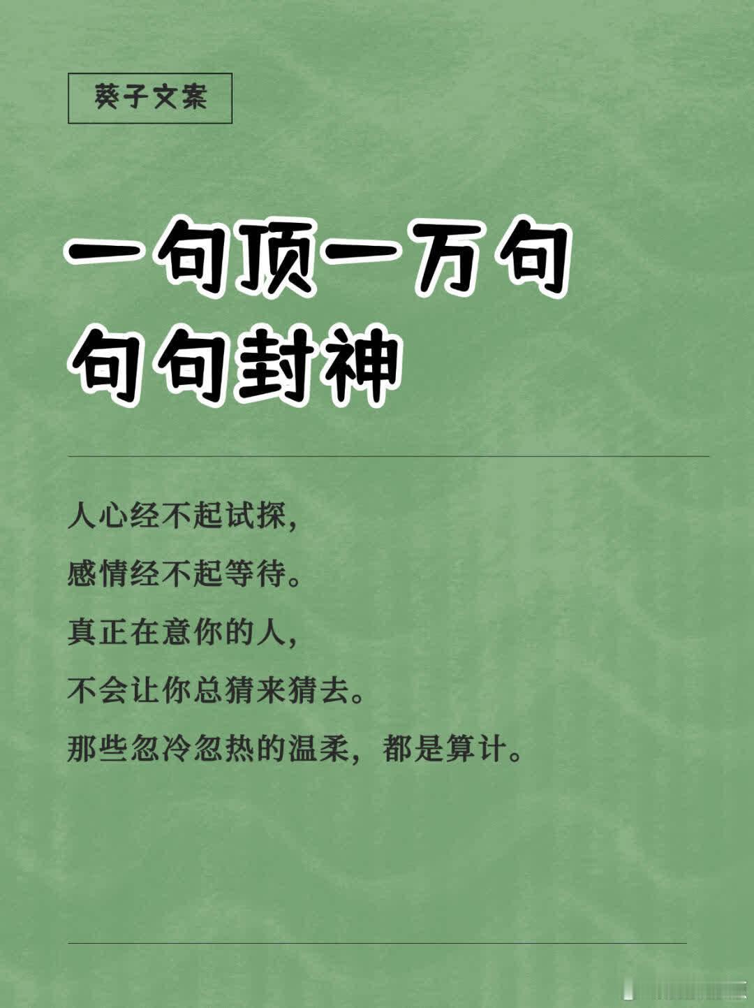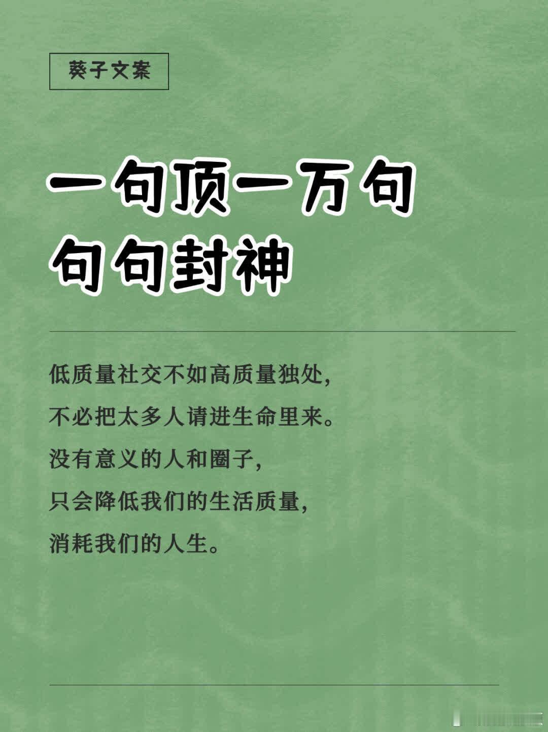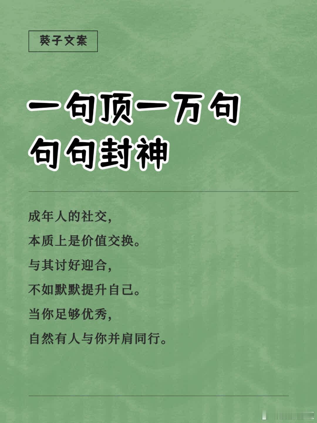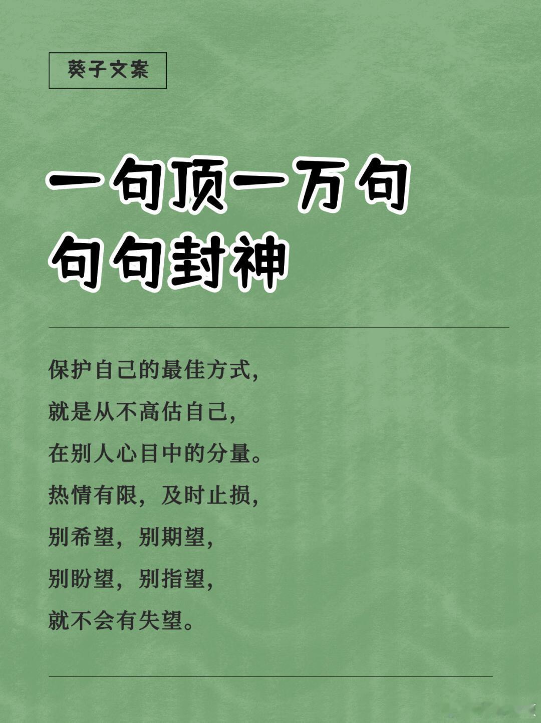 一句顶一万句,句句封神 1️⃣在利益面前,不要高估你和任何人的关系。人间清醒的四不原则:不被拿捏、不信承诺、不吃大饼、不听故事。 2️⃣永远不要告诉别人你有多惨,80%漠不关心,19%幸灾乐祸,委屈要自己消化,故事不用逢人就讲。 3️⃣人心经不起试探,感情经不起等待。真正在意你的人,不会让你总猜来猜去。那些忽冷忽热的温柔,都是算计。 4️⃣世间所有的看不起,都源于你混得不够好。当你强大时,整个世界都会对你和颜悦色;当你弱小时,坏人最多。 5️⃣低质量社交不如高质量独处,不必把太多人请进生命里来。没有意义的人和圈子,只会降低我们的生活质量,消耗我们的人生。 6️⃣承诺像风,说出来容易,飘走了无声,不要在乎失去谁,最该在乎的是剩下谁。筛掉的都是杂质,留下的才是真金! 7️⃣保护自己的最佳方式,就是从不高估自己,在别人心目中的分量。热情有限,及时止损,别希望,别期望,别盼望,别指望,就不会有失望。 8️⃣成年人的社交,本质上是价值交换。与其讨好迎合,不如默默提升自己。当你足够优秀,自然有人与你并肩同行。 9️⃣人性的一大丑陋之处,就是见不得别人好。你若有钱有势,看到的全是笑脸;你若没钱没势,只会体验到世态炎凉。
