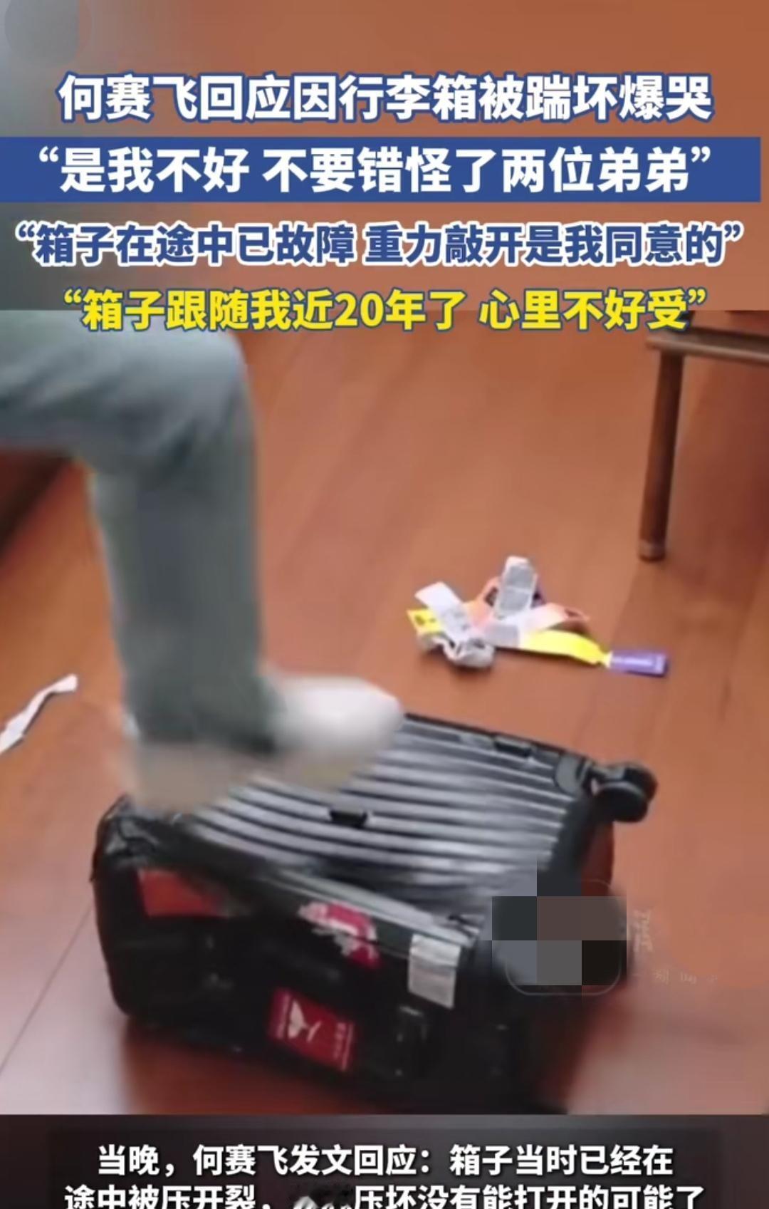 何赛飞在片场看着用了二十年的行李箱被铁棍撬开,当场哭成泪人。 视频一出,全网骂工作人员粗暴。 结果她亲自解释:锁卡死,是她点头让小伙子砸的。 箱子是当年跑码头买的,贴纸里夹着儿子第一张奖状,轮子磨得发亮,陪她走过几百个城市。 旧物一碎,回忆哗啦啦漏一地,情绪绷不住,只能哭。 她没怪谁,只说“人没事就好”,转头把破箱子叠好,用胶带缠了三圈,继续去对戏。 老艺人把岁月装进行李箱,也把自己活成了老物件。 珍惜的不是钱,是陪自己熬过来的痕迹。