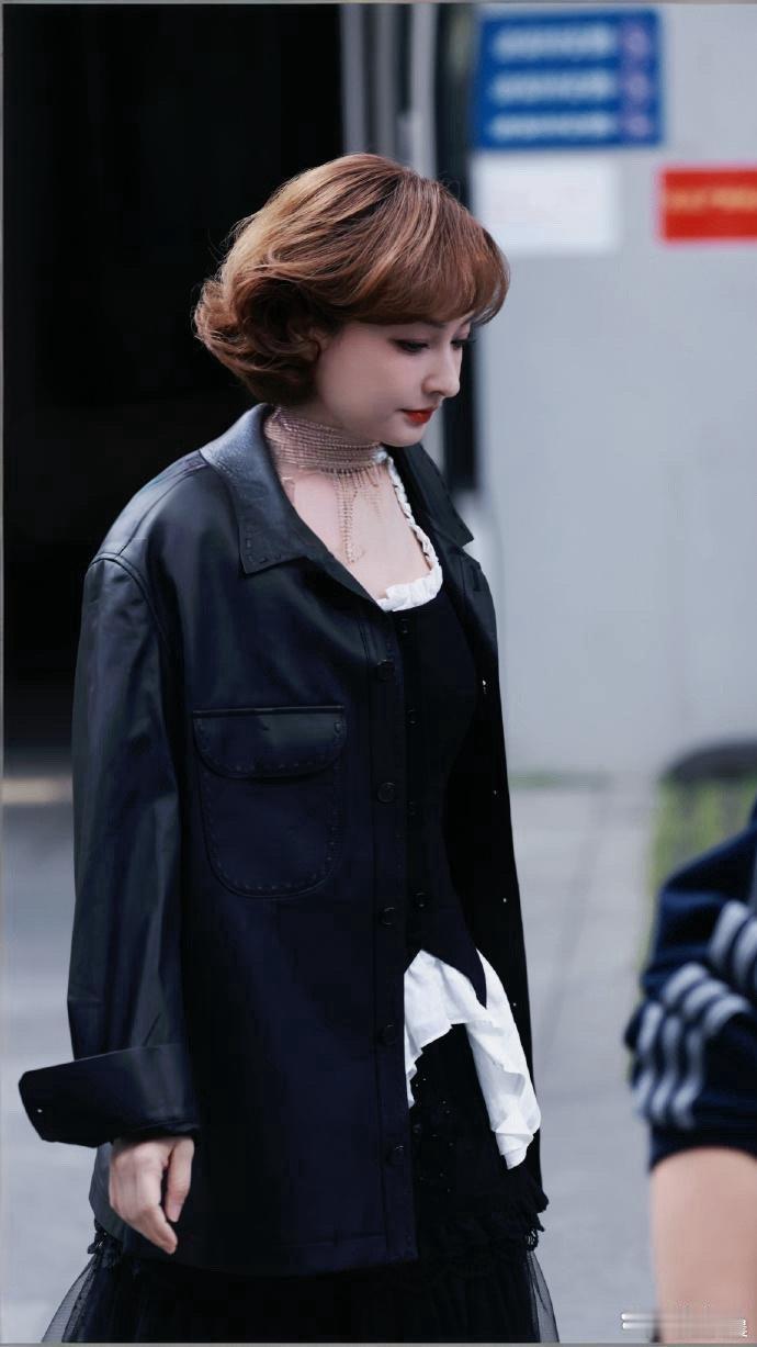 吴昕新烫的微卷短发也太加分了!搭配黑色皮衣与薄纱半身裙,甜酷风格碰撞出高级洋气感,整个人气质大变样,完全让人眼前一亮~