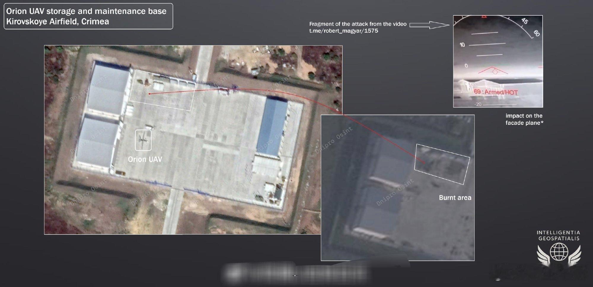 近期乌军无人机和导弹打击俄占克里米亚俄军目标结果来了。卫星图像显示,克里米亚基洛夫斯克机场的"猎户座"无人机储存维修基地遭袭,两座机库与俄军飞手装备区可见明显损毁,周边呈现焦灼区域。 【图❶】萨基热电厂遭受重大破坏。【图❷】