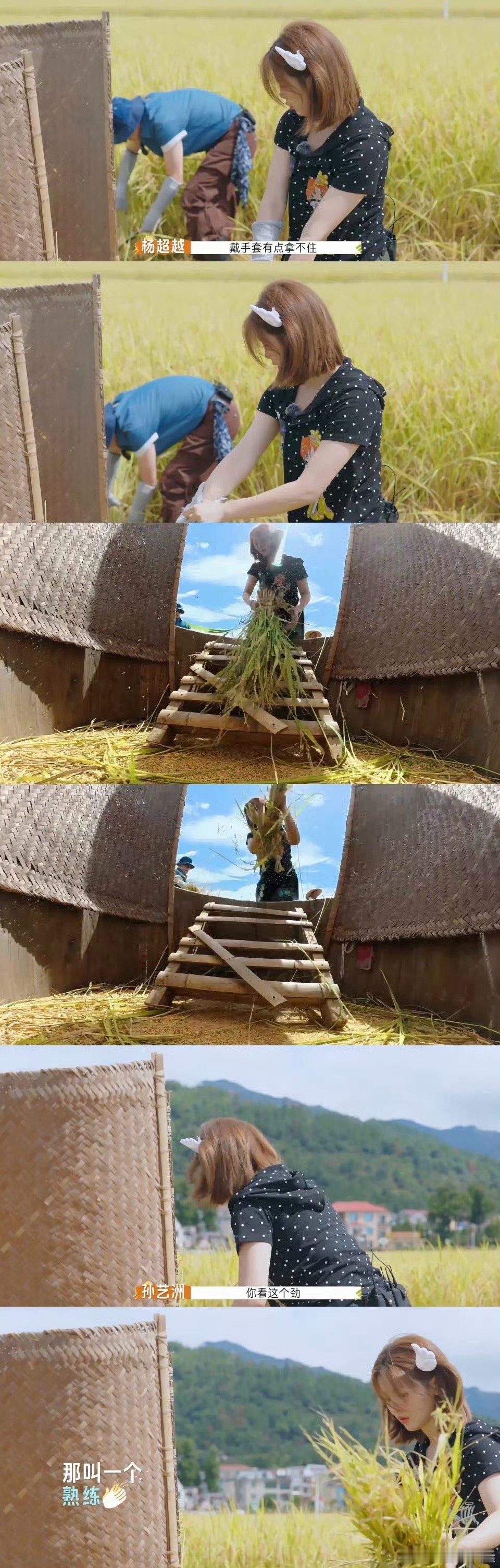 这打谷子的熟练度我给满分!杨超越干起农活来毫不含糊,每个动作都透着踏实劲儿,真是娱乐圈里难得的真实可爱,爱了爱了!