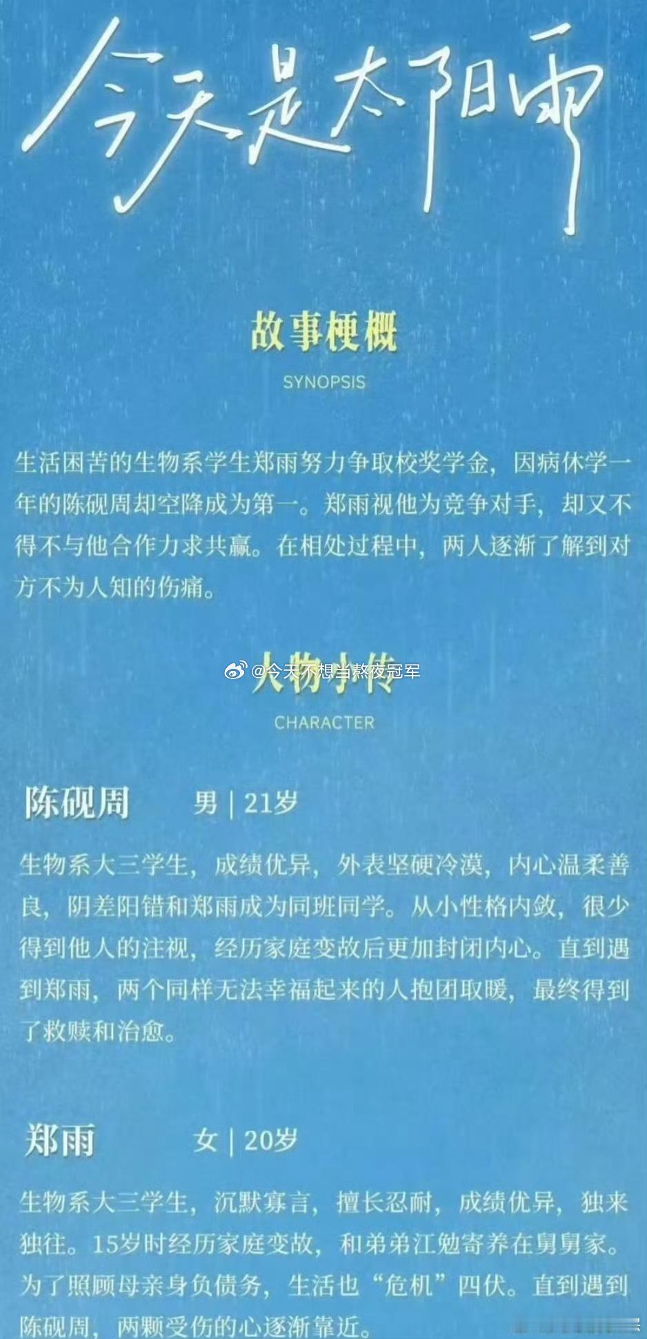 杨超越 董思成《今天是太阳雨》官抖已开通,即将官宣开机了