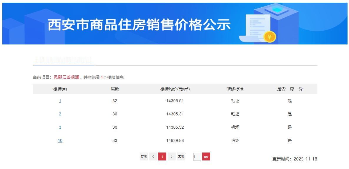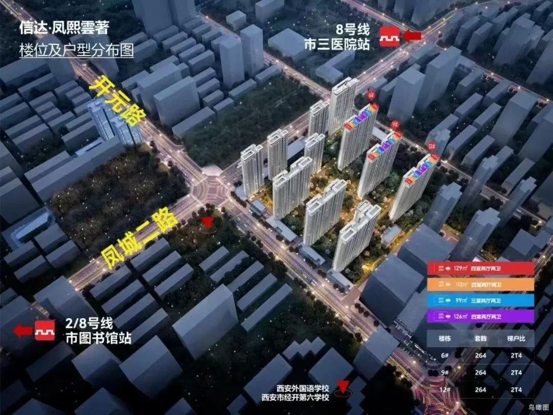 快讯!日前,西安住建局官网公示了经开区凤城二路板块“信达·凤熙雲著项目”新一批房源的价格! 信达·凤熙雲著项目(凤熙云著观澜)位于西安经开区凤城二路以南、开元路以东,总占地面积约153亩(其中住宅103.55亩、商服49.49亩),容积率5.0,规划13栋总高10-33F层的住宅+3栋商业。 项目观澜地块自带1所社区幼儿园,社区通过“三大入口+两大品质中庭+一个全龄活动区+一个环氧跑道+七大宅间邻里花园”的布局,实现绿化率约30%,将约1200㎡与约950㎡的两大中庭化为社区绿肺,下楼即能遛弯、晒太阳、侍弄花草... 项目一路之隔是西安市经开第六学校(公办九年一贯制,原西安外国语学校),距西安地铁2号线与8号线换乘站青少年中心站(原市图书馆站)约200米,距西安地铁8号线市第三医院站约300米,距离西安市第三医院(三甲)约800米。 周边还有未央168商业街区、长安医院、文景公园、青少年活动中心、西安市未央区方新小学教育集团南康校区、西安市第六十六中学、艾斯广场、西安凤城医院、万达广场、约5700亩的大明宫遗址公园、800亩的城市运动公园、四海唐人街、等成熟配套。 本次价格公示,项目推出1、2、3、10 楼 等4栋楼,均为30-33层的 高层产品,户型面积约99-130㎡,楼栋均价分别为14305.51㎡、14305.31㎡、14305.32㎡、14639.88㎡,单价最低13292元/㎡起,共617套毛坯房源。 项目优势在地段和配套,劣势在容积率比较高;不过在二环核心地段这个价格也是难得,刚需可以看看。