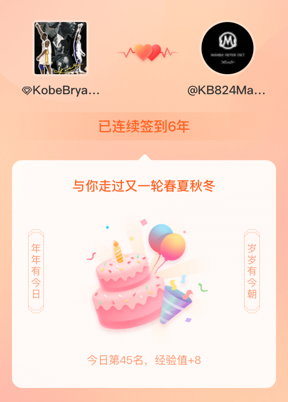 我在连续签到6年啦,还要一起走过很多个春夏秋冬~