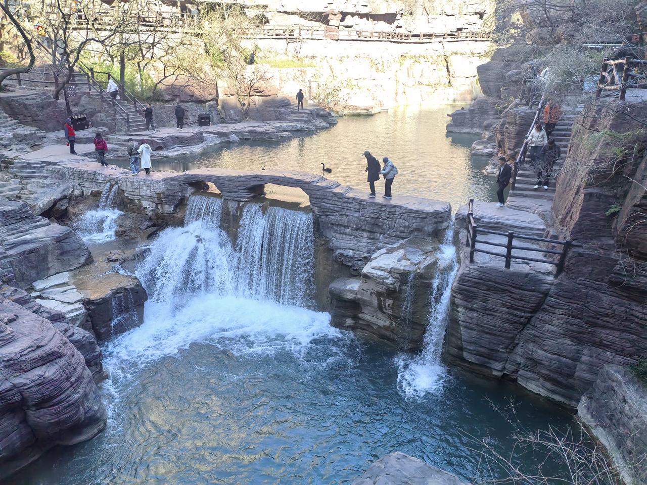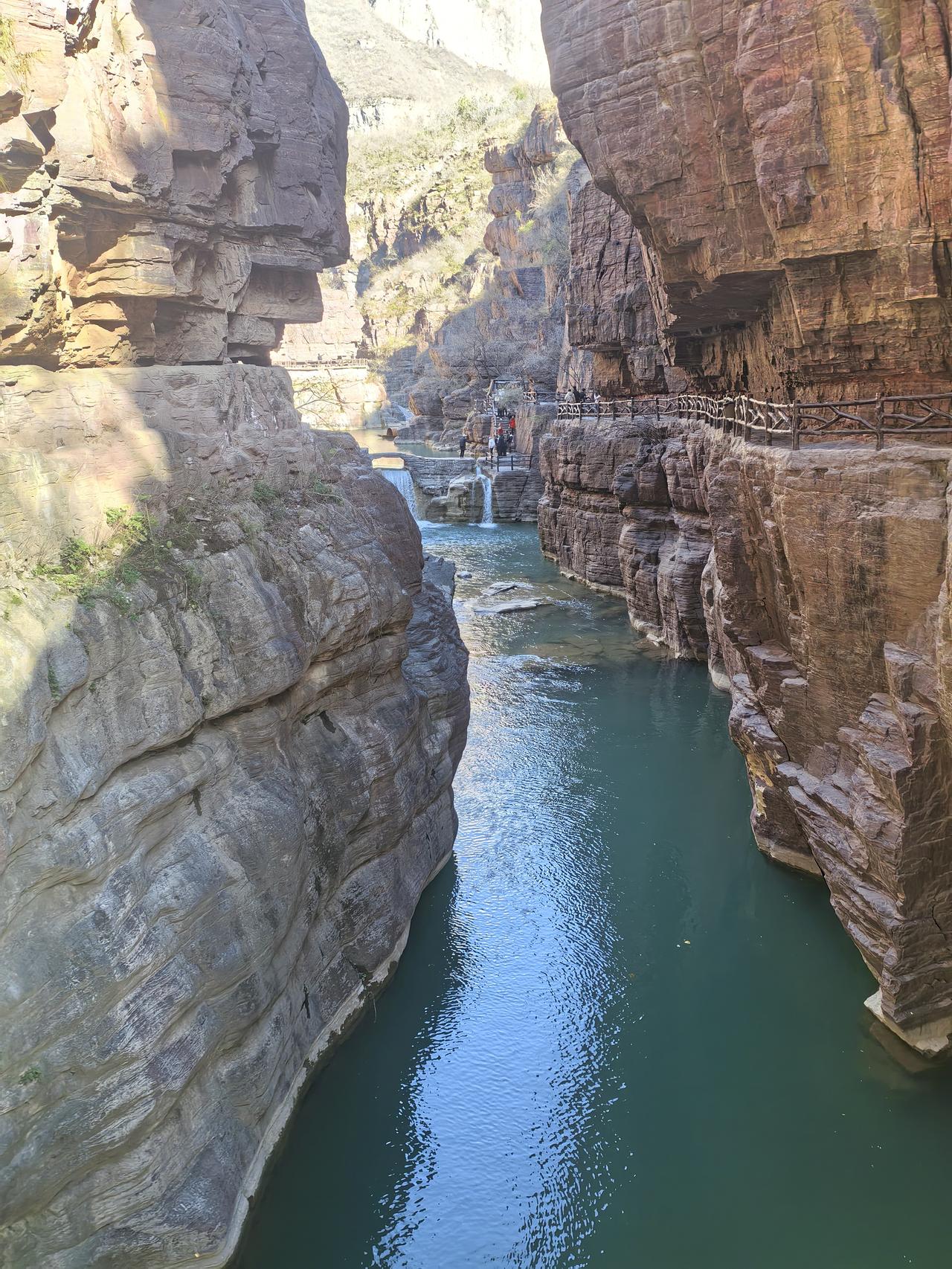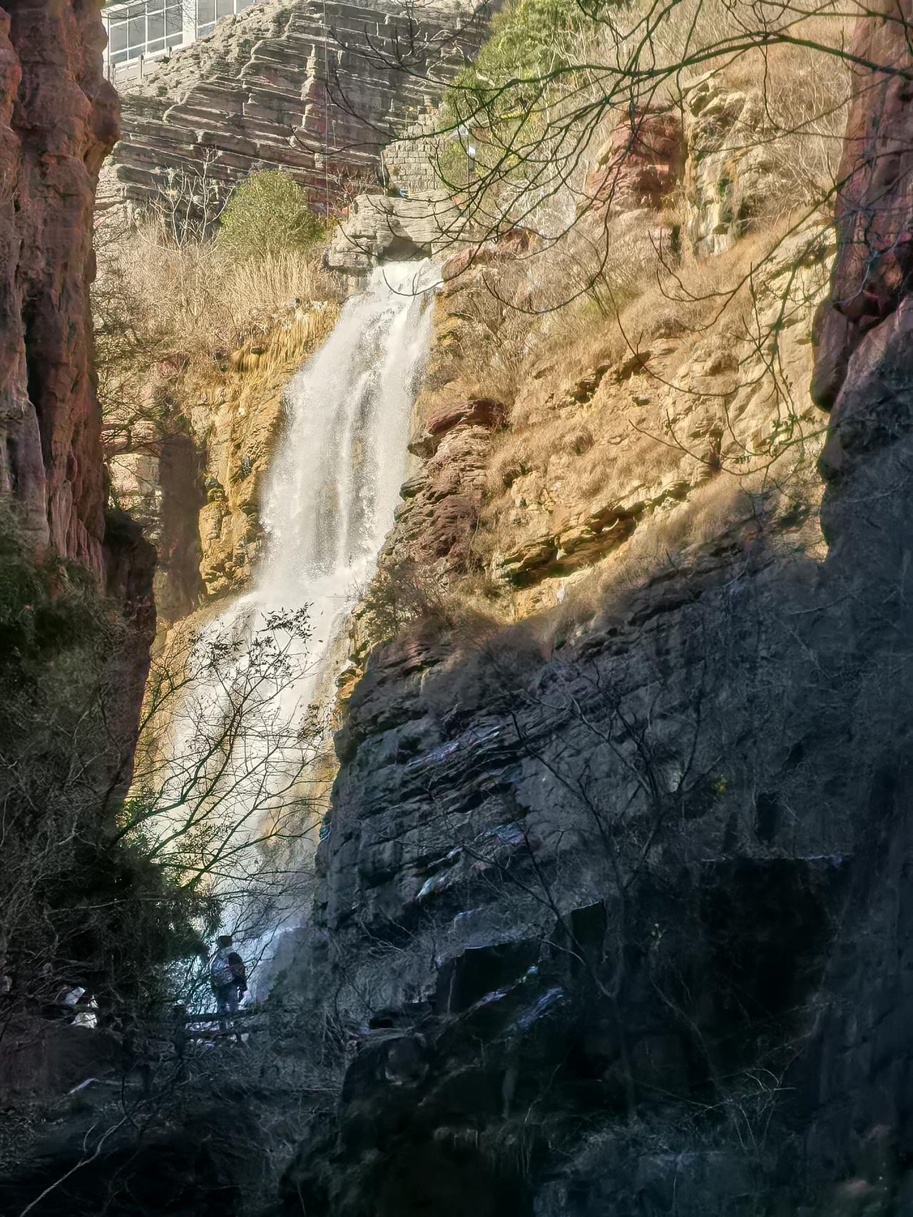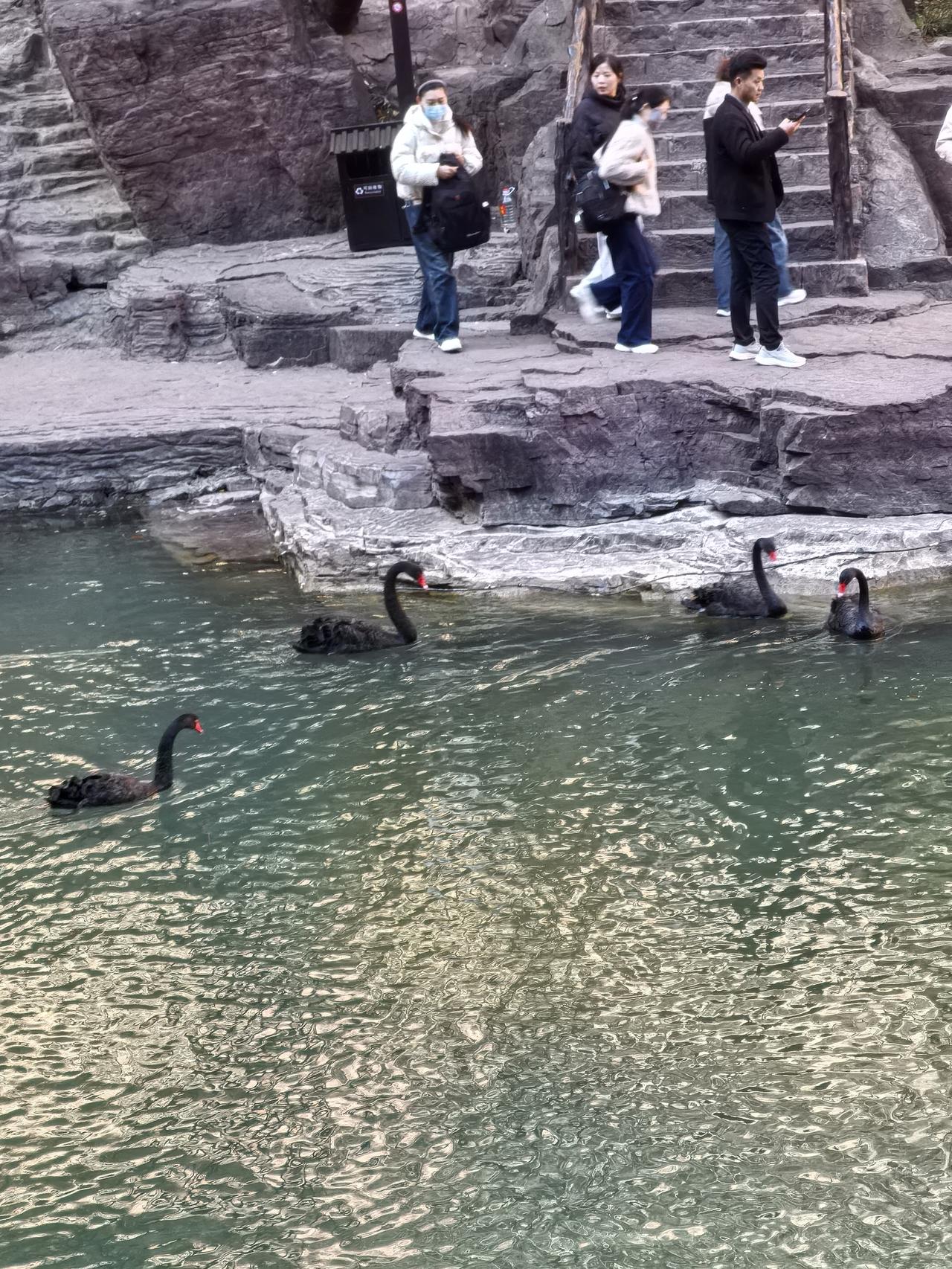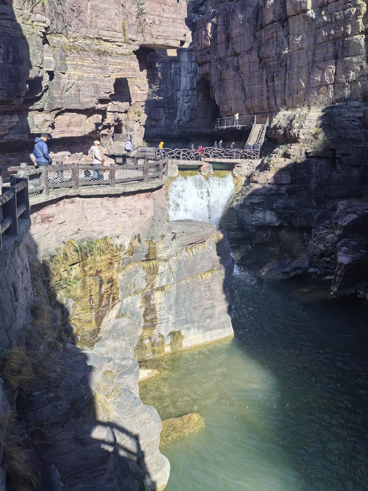 红石峡 云台首站红石峡 自然美景天工画 瀑布飘雨润红石 天鹅悠闲戏客人