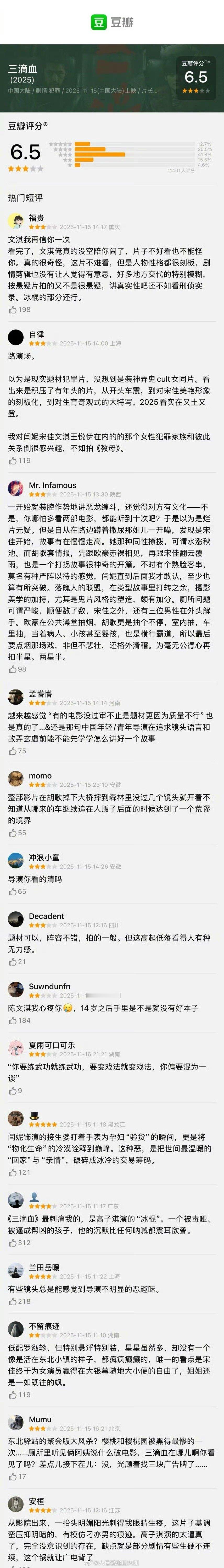 胡歌的又一部电影男主作品出分了,和影后文淇搭档的电影《三滴血》豆瓣开分6.5,胡歌在剧中的造型很是沧桑,大部分观众给了三颗星,就是说6.5分是高了还是低了啊”