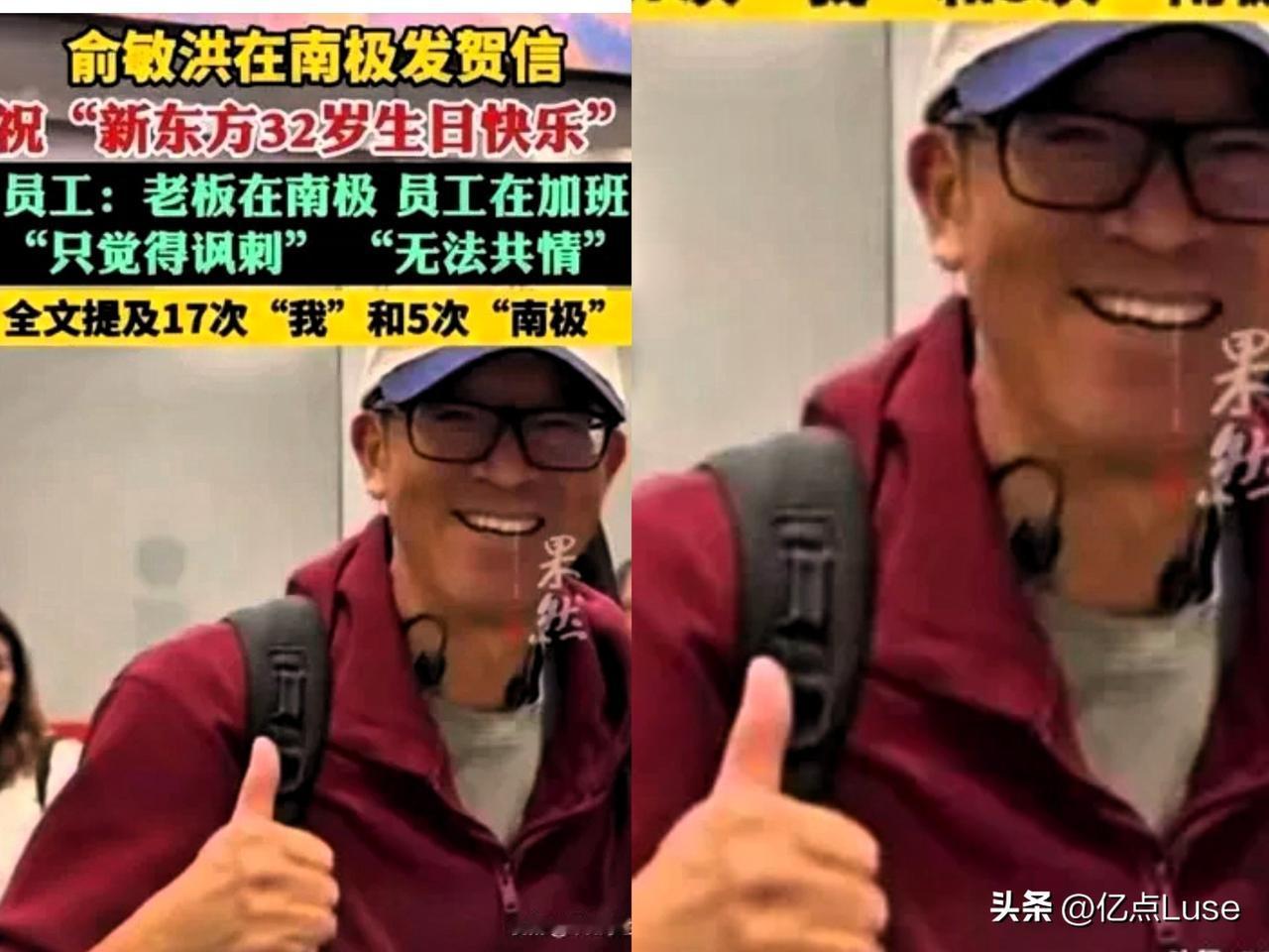 还是冯唐最理解俞敏洪, 不愧是麦肯锡管理出来的,太懂资本家和老板的心思了,他说俞敏洪激励人的方式很省钱。 这不,俞敏洪南极旅游发全员信遭吐槽上了热榜。11月16日新东方32周年庆,俞敏洪在南极给员工发信,不仅没引起共鸣,反倒被吐槽。 员工称纪念日当天忙完工作还得连夜赶方案,老板却在南极聊企鹅。信里提了5次“南极”,17次“我”,却鲜少关心员工压力。 之前冯唐就说过俞敏洪激励方式省钱,这次算是实锤。周年庆来点实在的,放假或者发奖金不好吗?只能说现在员工不吃精神鸡汤这套了。 你们觉得,老板该如何激励员工?