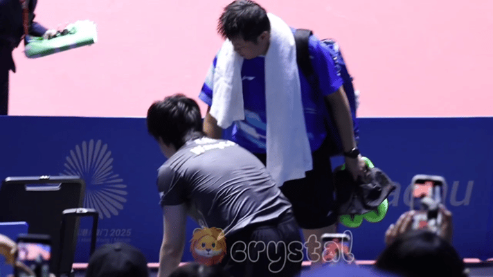 笑死了,第一次看到赛后第一时间找对手复盘的,侯英超和王楚钦打完,被零封, 赛后一直等着楚钦,和他一起退场。 今天被侯英超给笑死, 楚钦第一盘和龙队就打了侯英超袁励岑, 第三盘又打了侯英超, 结果是3-0, 赛后,侯英超一直追着王楚钦,并且一起退场, 嘴没停下来,一直在讲话。 这还是第一次看到比赛结束和对手复盘的😁 反正都挺可爱。 看来是意犹未尽,需要再沟通几句。😁