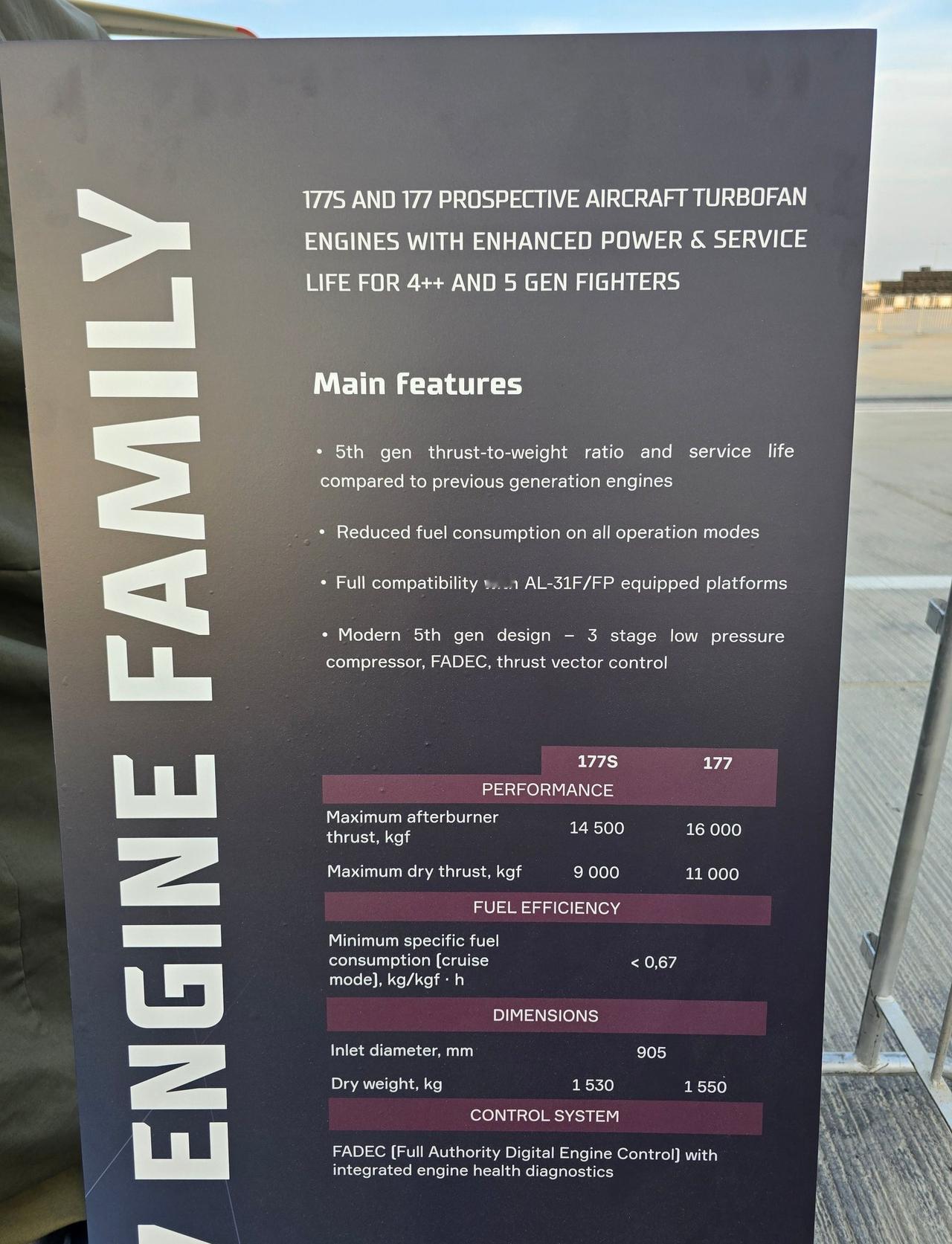 迪拜航展上的发动机数据展板 177S 14.5吨 177 16吨 注意177不是现在用的那堆117系列烽火问鼎计划 ​