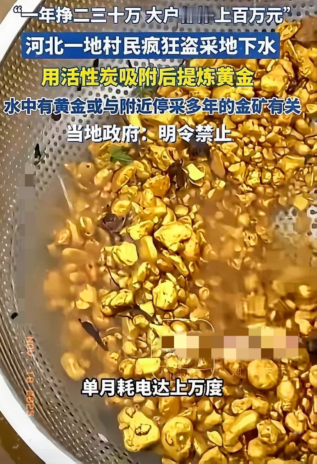 贪心不足蛇吞象!11月16日发布,河北一村民抽地下水使用,竟然在水里发现了黄金,他却没有上报,而是偷偷在自家院子里打深井,不断抽地下水炼黄金,这还不止,他还把这事告诉了村民,结果不少人都加入其中,一个月用电量超1万度,村里的“大户”一年纯利能超百万! 这哪是淘金,分明是拿全村的命换短期暴富!地下水里的黄金,本就是早年金矿残留的氰化物泡出来的“毒金”,村民只顾着炼80克黄金赚七八万,却忘了抽水机抽走的是赖以生存的地下水。 短短两年,吃水井全枯、小河变毒河,孩子重金属超标,地表还面临沉降风险,这些隐患比罚款2.3万严重百倍。国家的矿产和水资源本就不属于个人,这种违法开采,赚的是断子绝孙的黑心钱。 真金白银换不来干净的水和安全的家,你觉得该怎么彻底叫停这种“以家园换黄金”的糊涂事?