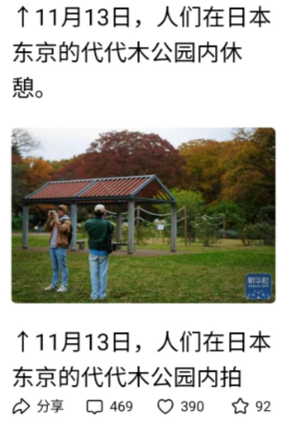 正当全国人民都在批斗日本首相高市早苗之时,新华社突然发了一组日本东京代代木公园的图片,这是什么意思?实在令人难以费解! 麻烦看官们右上角点击一下“ 关注”,既方便您进行讨论和分享,又能给您带来不一样的参与感,感谢您的支持! 最近看到一组新华社发的代代木公园秋景的照片,真让人有点耐人寻味,你想啊东京的代代木公园,在秋天的阳光下,银杏叶铺满了地面,公园里的老人们悠闲地遛狗,孩子们在阳光下嬉笑打闹,整个画面安静得几乎可以听见风吹过树梢的声音。 这种平静的秋日景象,看起来和当前国际政治的紧张氛围完全不对称,仿佛世界的运转从此进入了两个不同的轨道一个在这里,一片祥和宁静;而另一个在远方,暗潮涌动,风雨欲来。 可这背后的含义,显然不是简单的景色渲染,因为你看看这段时间的新闻,尤其是日本政坛的高市早苗,她的言论几乎把所有人都弄得心烦意乱,她说的那些话,简直是把台海问题从中国的核心利益中拽出来,硬是扯到日本的“存亡危机”上,她还嚷嚷着如果台海有事,日本可能要出手干预,呃,这话说得也忒大了点吧?一个相对小的局部问题,硬是和日本的存亡挂钩,脑袋瓜真是不知道怎么想的。 要知道台湾自古以来就是中国的一部分,这在国际法上是明确无误的,从《开罗宣言》到《波茨坦公告》,这些历史文件清清楚楚地写着,台湾归中国,高市的言论,充其量就是一种政治炒作,试图利用台海问题煽动民意,达到她自己的目的。 可她忘了一点,日本作为二战的战败国,早就被限制了军事扩张的空间,她这种言论,无非是在寻找借口重启日本的军国主义,老实说在全球都在努力推动和平的时候,这种言论简直像是向世界宣布“我准备再来一轮”。 在高市一番激进的言论后,不仅中国发出严正交涉,连日本国内也开始发出了反对的声音,前首相鸠山由纪夫直接表示,这么乱说话不符合日本历届政府的立场,太过分了,连日本的民众都不愿意被这类煽动言论牵着走,纷纷举起反对的标语,喊着“不要战争”,你看,这画面简直是一种反讽,高市的激进,和东京街头那些追求和平的普通百姓,形成了一个鲜明的对比。 而新华社发布的代代木公园的秋景照片,正是在这一背景下,让人看了特别有意味,你看那些穿行在公园里的普通人,他们没有在讨论什么军事议题,也没有在指责某些政客,而是在享受秋天的宁静生活,和他们的狗散步,带着家人晒太阳,拍着秋天的照片,似乎整个世界的压力都和他们无关。 秋天是收获的季节,是一切沉淀与准备的季节,银杏叶在风中飘落,最终归于大地,它们的安静正如人们的内心,这样的一幕,仿佛在告诉我们,不管国际局势如何波动,这份日常的安宁才是最为珍贵的。 这种宁静,给人一种别样的力量。它并不是消极的逃避,而是一种淡定的坚持,其实,在这个国际形势愈加复杂的时期,我们更需要的是这种稳重与耐心,那些激进的言论,看起来很响亮,可最终不过是秋后的蚂蚱,蹦跶不了几天。 毕竟这种破坏和平的行为,终究难以改变民众对和平的渴望,你看,代代木公园里那些和煦的秋光,和那些悠然自得的人们,仿佛在告诉所有人:和平,才是人心所向,才是社会最基本的需求。 最妙的是,新华社发布这组秋景图的时间,简直让人忍不住想多想几层意思,你说,正好是在高市早苗言论的风头最劲的时候,新华社用这样一幅平静的秋景,作为回应,是不是很有分量?看着那些在公园里晒太阳、惬意散步的人们,心里不禁涌现出一种温暖的力量:这些普通人要的就是这种安稳的日子,不是被政治口水战所搅乱的世界。 而这也正是中国政府的态度——我们不怕战争,但我们更珍惜来之不易的和平,和平可不是理所当然,它需要每个人的维护和珍惜,而不是被某些政治野心所撕裂。 你再想想电影《终结者》里的经典场景,母亲带着孩子在公园里玩耍,四周一片宁静,阳光正好,忽然间,核爆的热浪席卷而来,那一切美好的瞬间都变得毫无意义。 你说这不就是对当下局势的一种警示吗?代代木公园的和平,就像电影中的那一瞬,极其脆弱,稍一不慎,或许就会被破坏得支离破碎,那些煽动战争、挑起对立的人,终究是要为自己的行为付出代价的。 对此,大家有什么看法呢?
