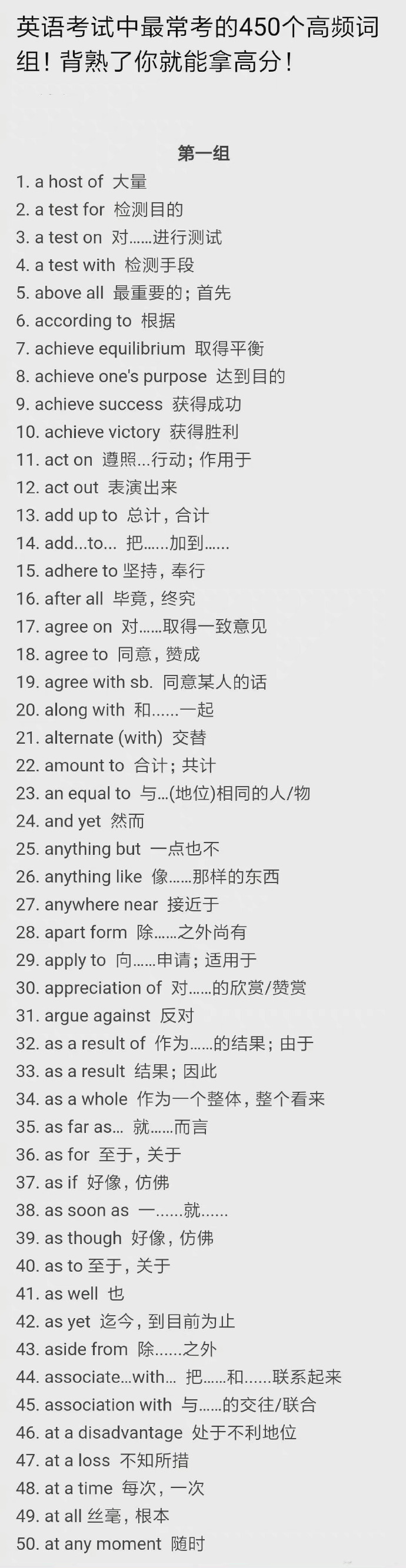 英语考试最常考的450个短语!