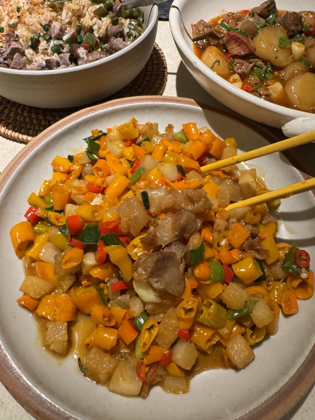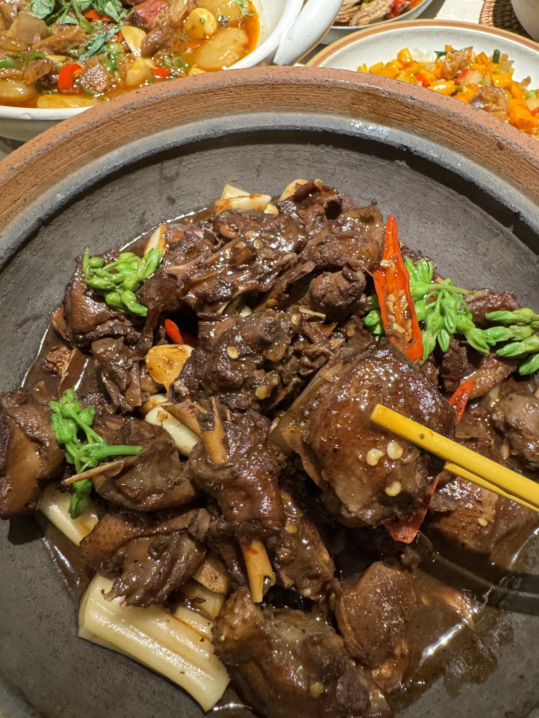 没想到把洛阳博物馆的“千年闺蜜”给我端上餐桌了…竟然是慕斯蛋糕,瞬间觉得文物活了!! 茶杯芝麻奶好惊喜,香醇的黑芝麻糊配上浓郁的开心果,一整个爱住 他们家菜也好好吃,每道都不踩雷!葛粉烧牛筋牛腩、都昌豆冲茶树菇、渣渣牛肉拌饭、黄贡椒酸萝卜猪脚…连吃三碗米饭的程度