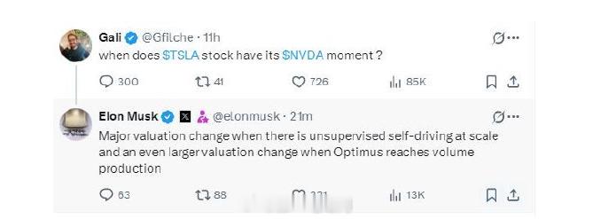 马斯克回答了特斯拉何时迎来自己的“英伟达时刻”的问题“当无监督自动驾驶大规模出现时,估值会发生重大变化,而当擎天柱机器人达到量产时,估值会发生更大的变化。”按这个说法感觉也不远了吧