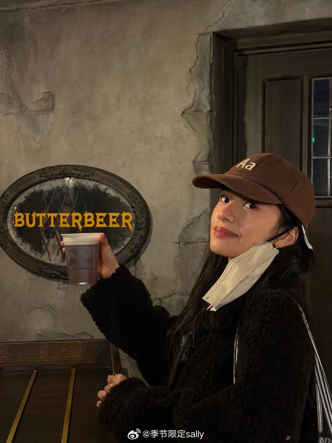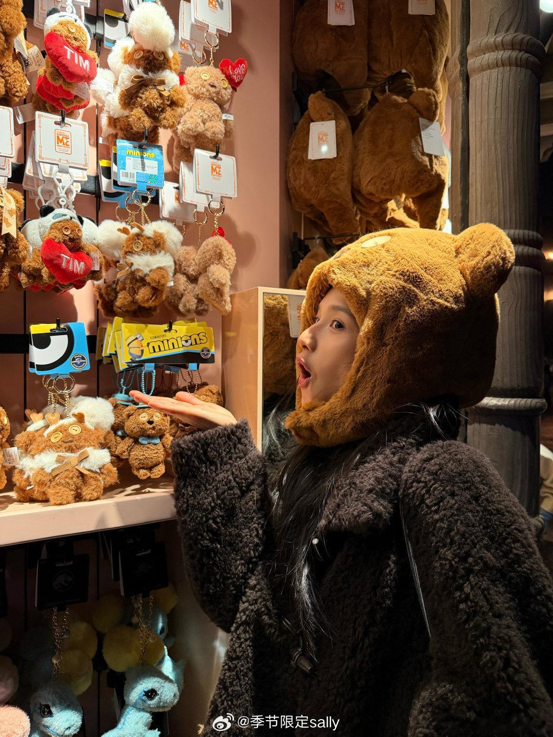 张婧仪营业,冬天穿的毛茸茸的,可可爱爱