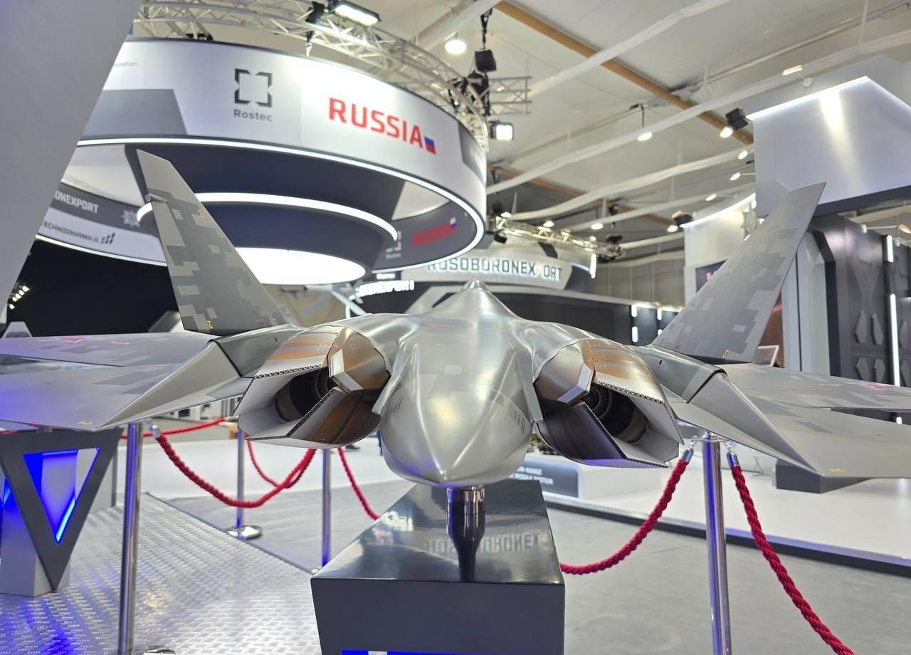 迪拜航展 — 俄罗斯展示了一架配备新型АЛ-51Ф1(产品 30)涡扇发动机的 Су-57 模型,该发动机具有扁平喷嘴和推力矢量控制功能。