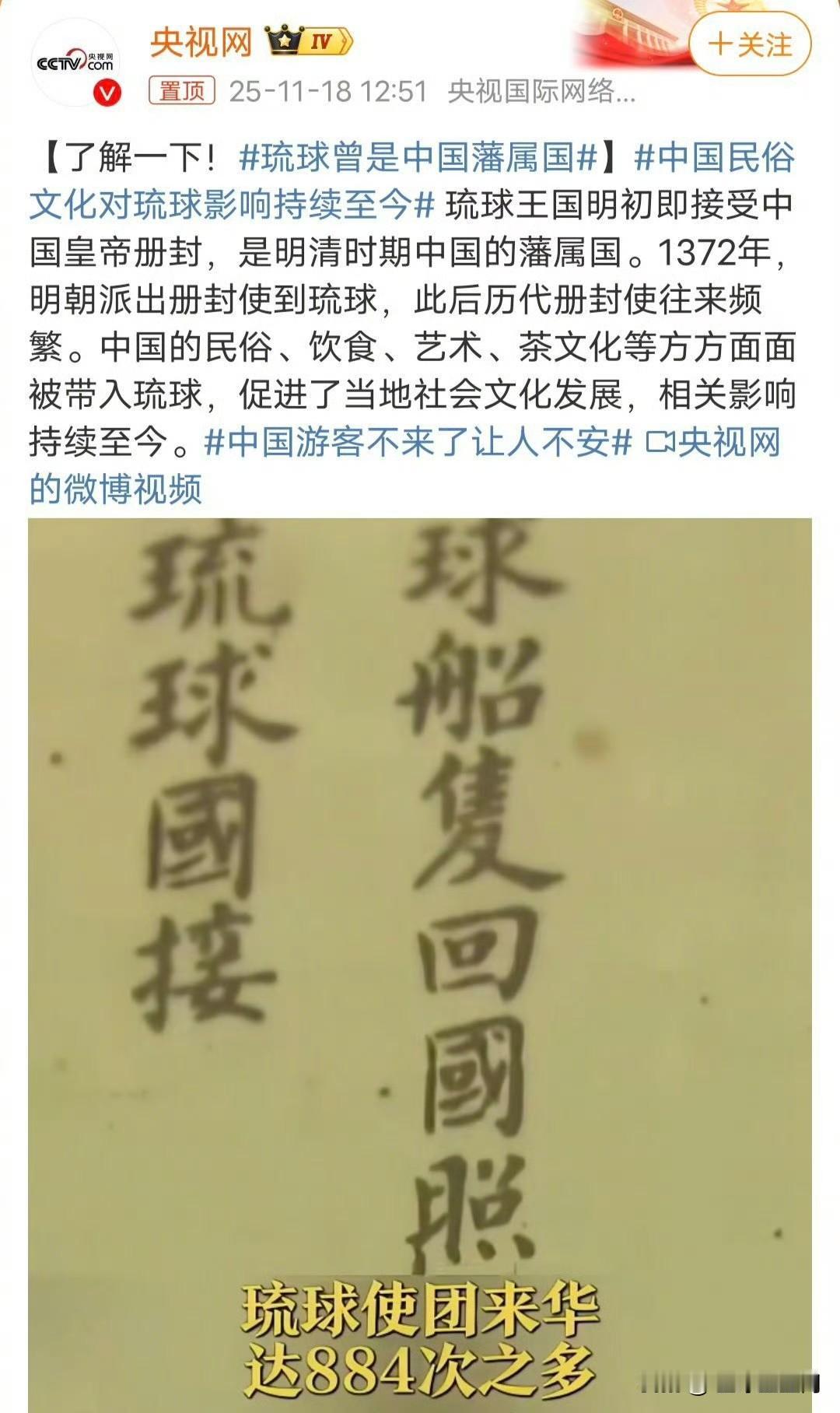 琉球曾是中国藩属国官方媒体终于开始提到琉球了[赞][赞][赞]