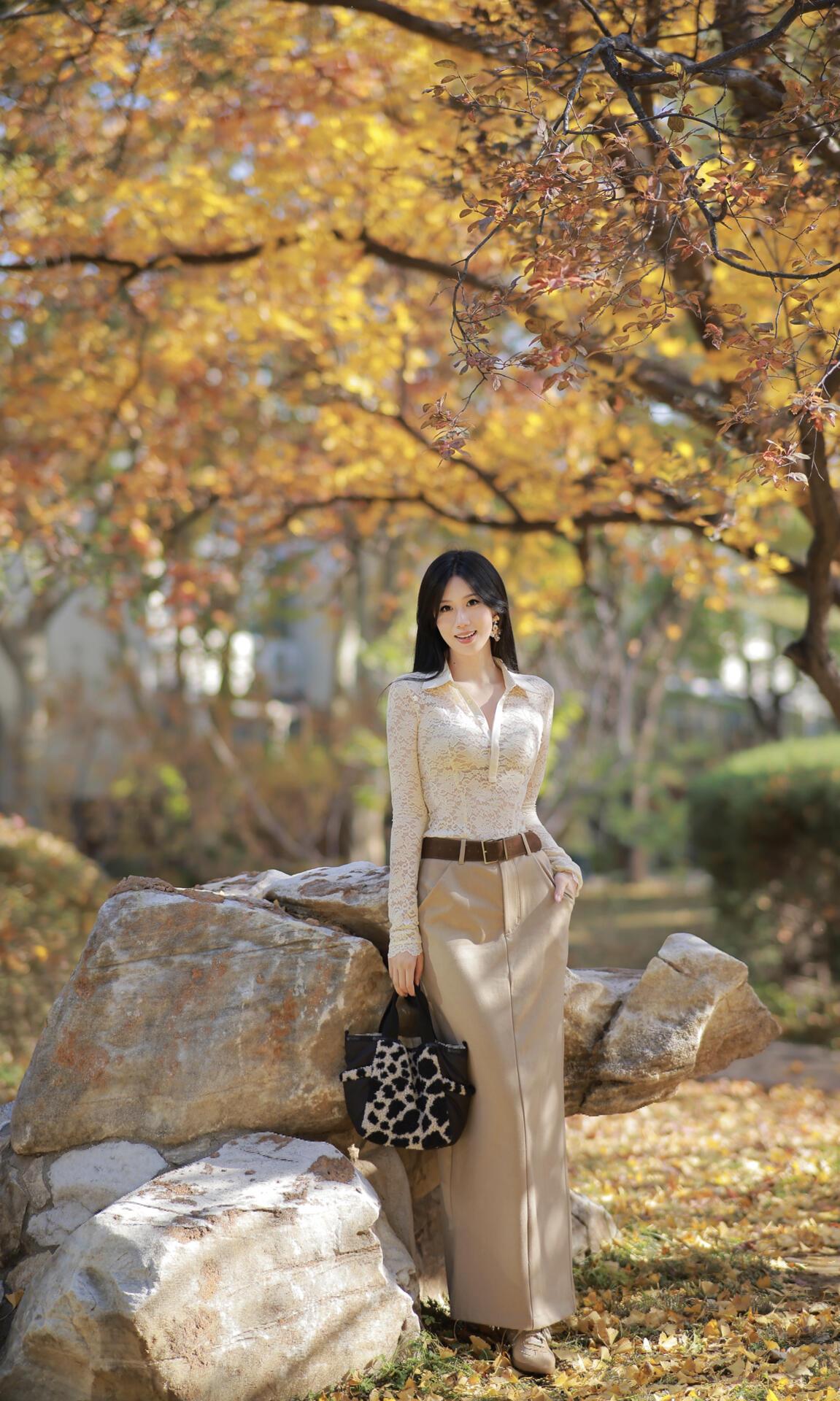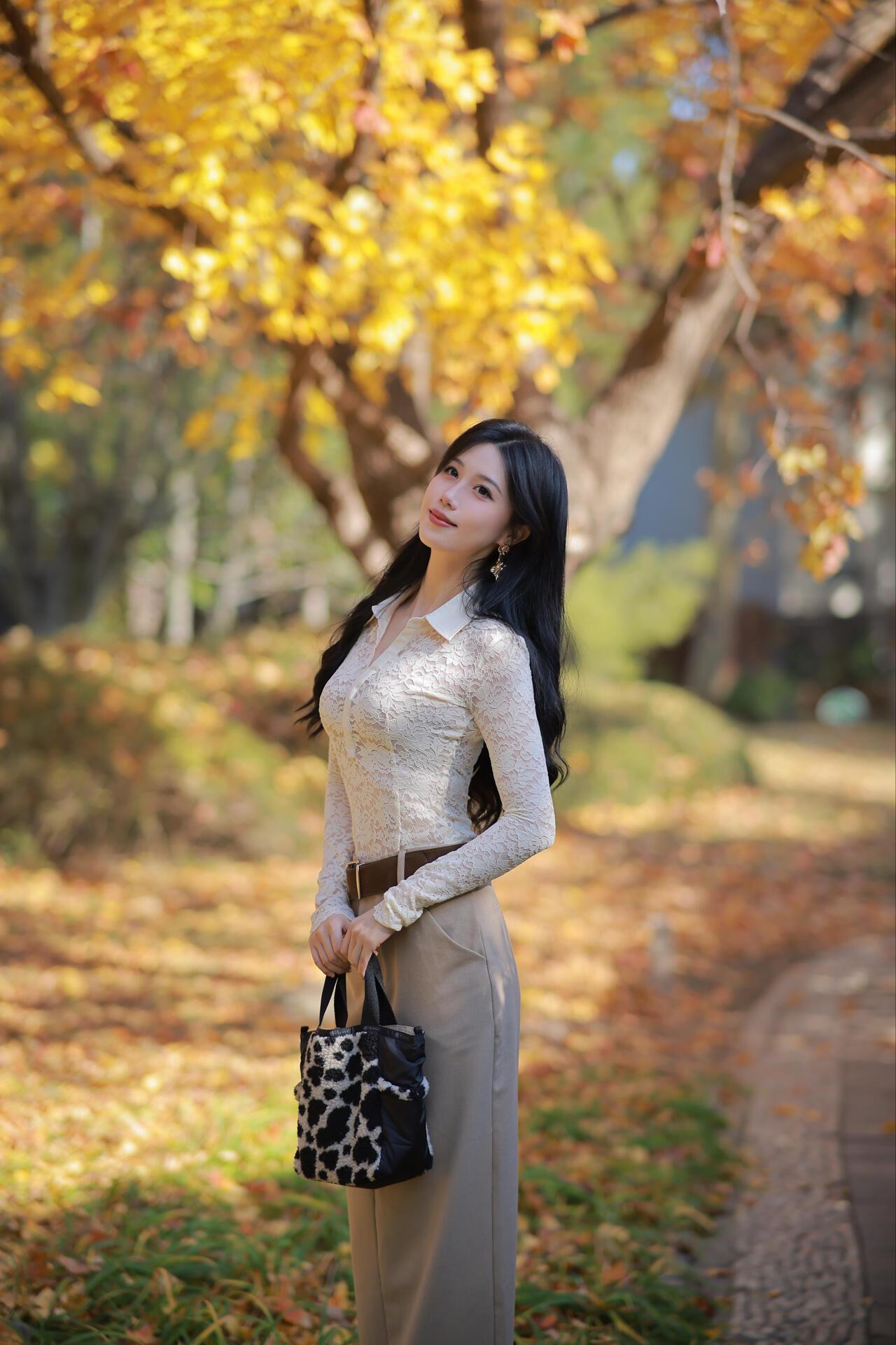 徘徊在秋光织就的诗行里,金风裹着桂香漫过发梢,我踩着碎金般的落叶,与时光撞个满怀。 蕾丝衫沾了几分暖阳的柔,长裙曳着树影的淡,掌心那片枫,是季节递来的信笺。栏杆外的水色浸了秋光,石边的风也裹着温柔,连鬓边的耳坠都摇碎了碎阳。 拎着豹纹包走过鎏金的林,落叶在脚下轻响,像光阴低吟。抬眸时,秋正栖在眉梢,把每一步都酿成浅唱:这人间的秋,原是心上的诗,不必追寻,只消站着,便成了画里的韵。 = = = = = = = = = = = = = = = = = = = = = = 【秋日人像摄影思路📸】 ①光线:选下午3-5点「黄金柔光」,逆光/侧逆光拍发丝光,让蕾丝纹理透微光; ②构图:用落叶/树干做框架,人物占画面1/3,低角度仰拍显氛围感; ③道具:捡大片枫叶互动,包/腰带做色彩呼应,增加画面层次。 【附参数参考👇】 –光圈:f1.8-f2.8(虚化背景+突出蕾丝细节); –ISO:100-200(晴天光线足,低ISO保画质); –快门:1/200s以上(避免人物动糊); –白平衡:K值5200-5500(暖调适配秋日氛围。