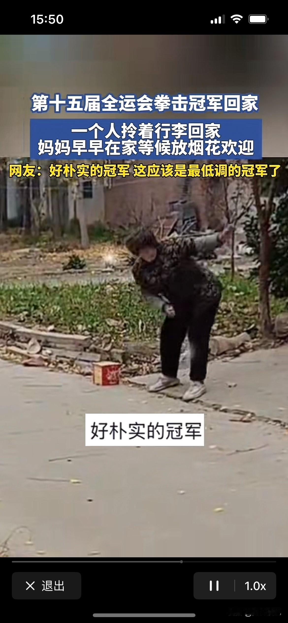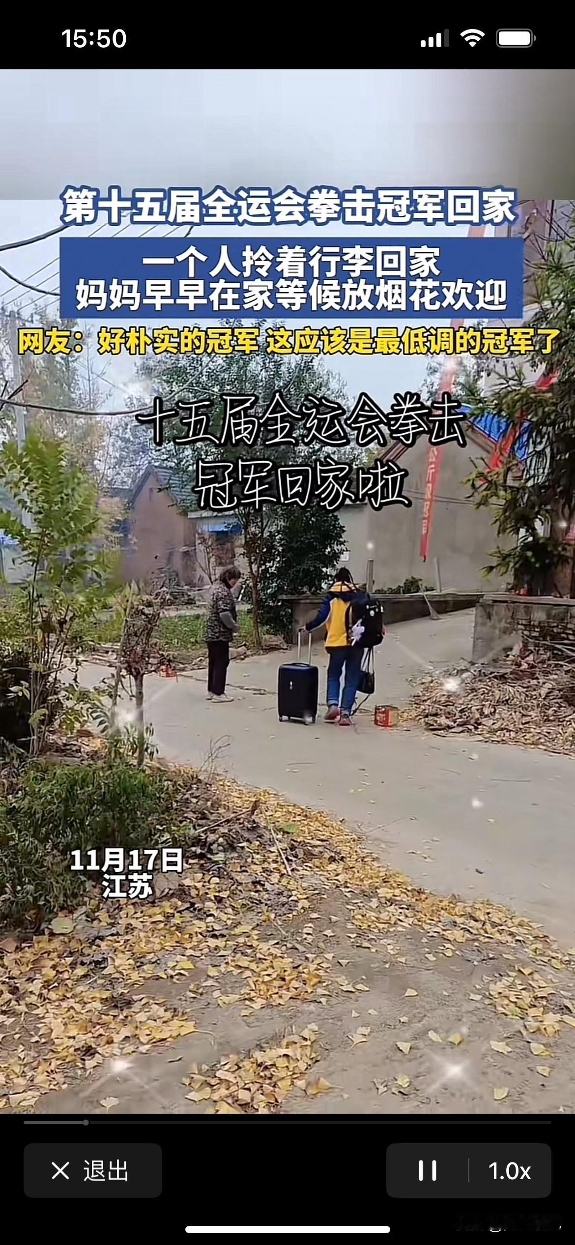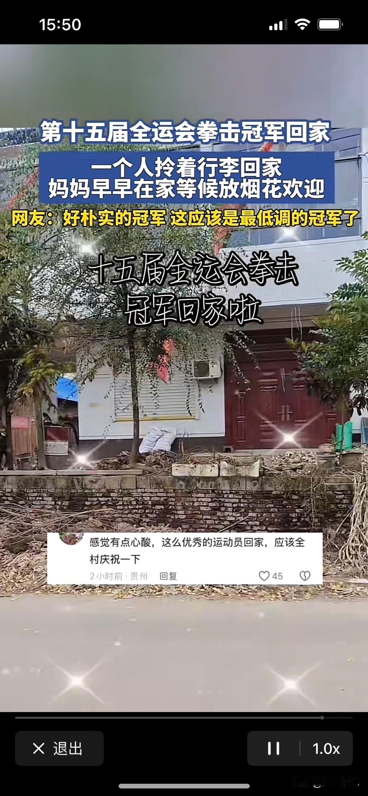 这个全运会冠军是谁,只有妈妈一个人欢迎,冷冷清清的,村里没有大张旗鼓,也没有村民