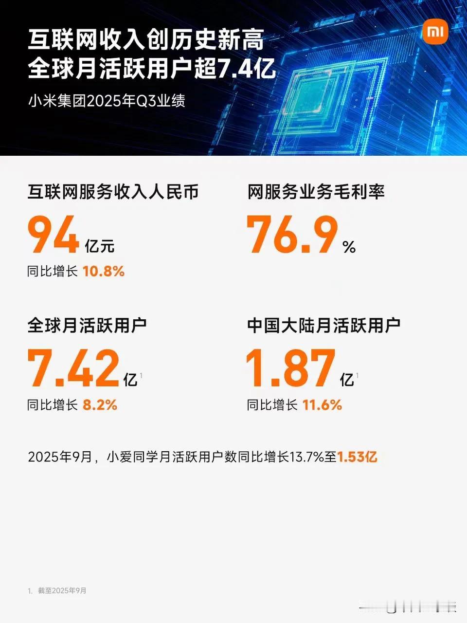 小米集团2025三季度财报来了!八个字概括:强韧增长,稳步向前。 总收入1131