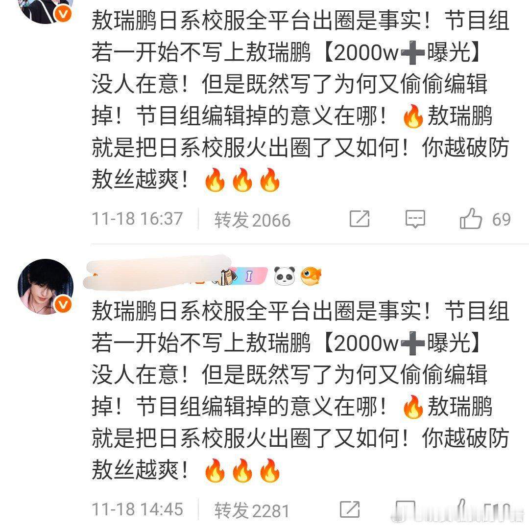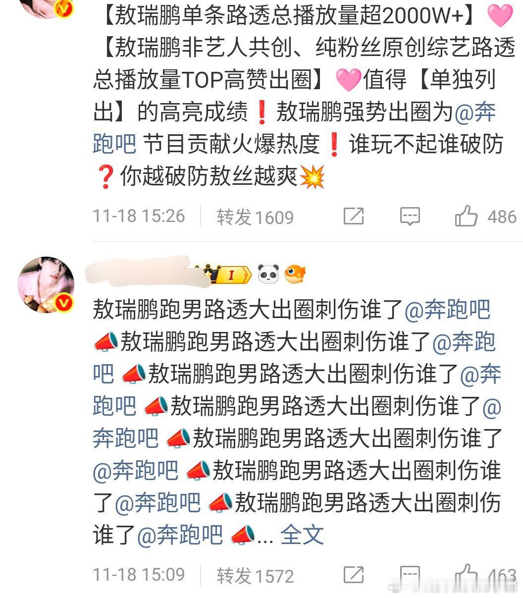 敖瑞鹏粉丝维权,奔跑吧官方把“敖瑞鹏单条路透总播放量超 2000w+”给编辑掉了😳