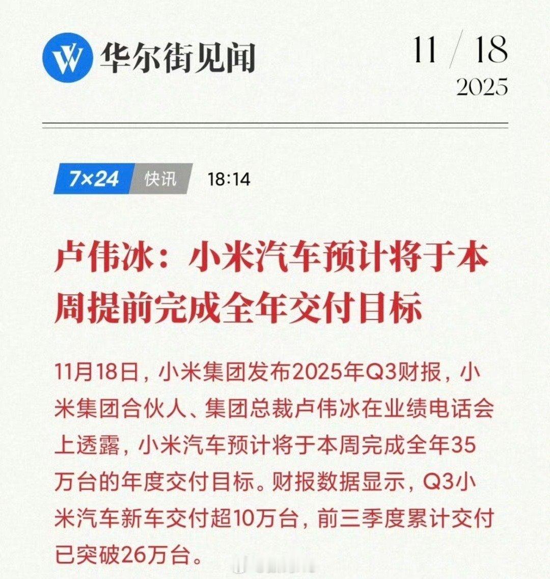 卢总:小米汽车的全年交付目标,预计本周完成。看来小米还是低调了,完成不了的要加油了