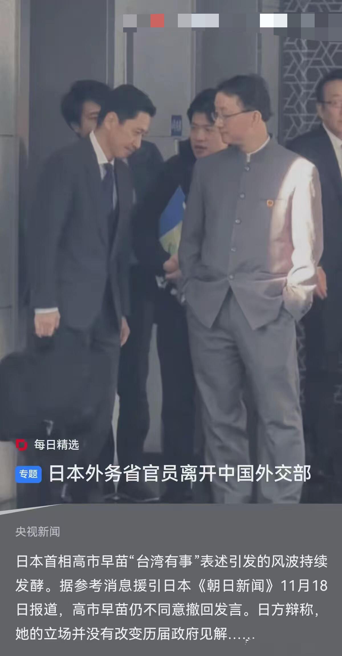 零成果!1小时!日高官来华碰一鼻子灰!日方未致歉还提无理要求!中方亮明红线! 昨天紧急来华的日本官员是日本外务省亚洲大洋洲局局长金井正彰。中方接见他的对口官员是中国外交部亚洲司司长刘劲松。 金井正彰17日抵达北京,其此行目的带有向中方既抗议又解释的双重目的性,想就相关事态表达日方不满,同时说明自身态度未变。 但磋商未达成实质性共识,整体可说是以零成果落幕。中方再次明确亮明一贯立场并向日方提出严正要求,但日方态度顽固,未致歉,仅声称高市的言论没有改变日本既定立场,还要求中方保持冷静,却又拒绝就相关言论作出实质解释。 最终双方不欢而散,原计划两小时的会谈仅一小时就结束,会谈后金井正彰面对媒体的连环追问全程缄默不语,匆匆离场,也印证了此次磋商未取得有效成果。