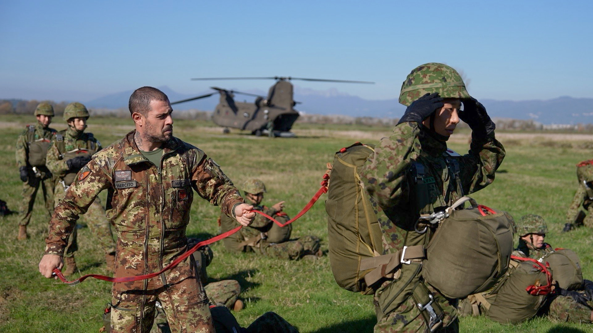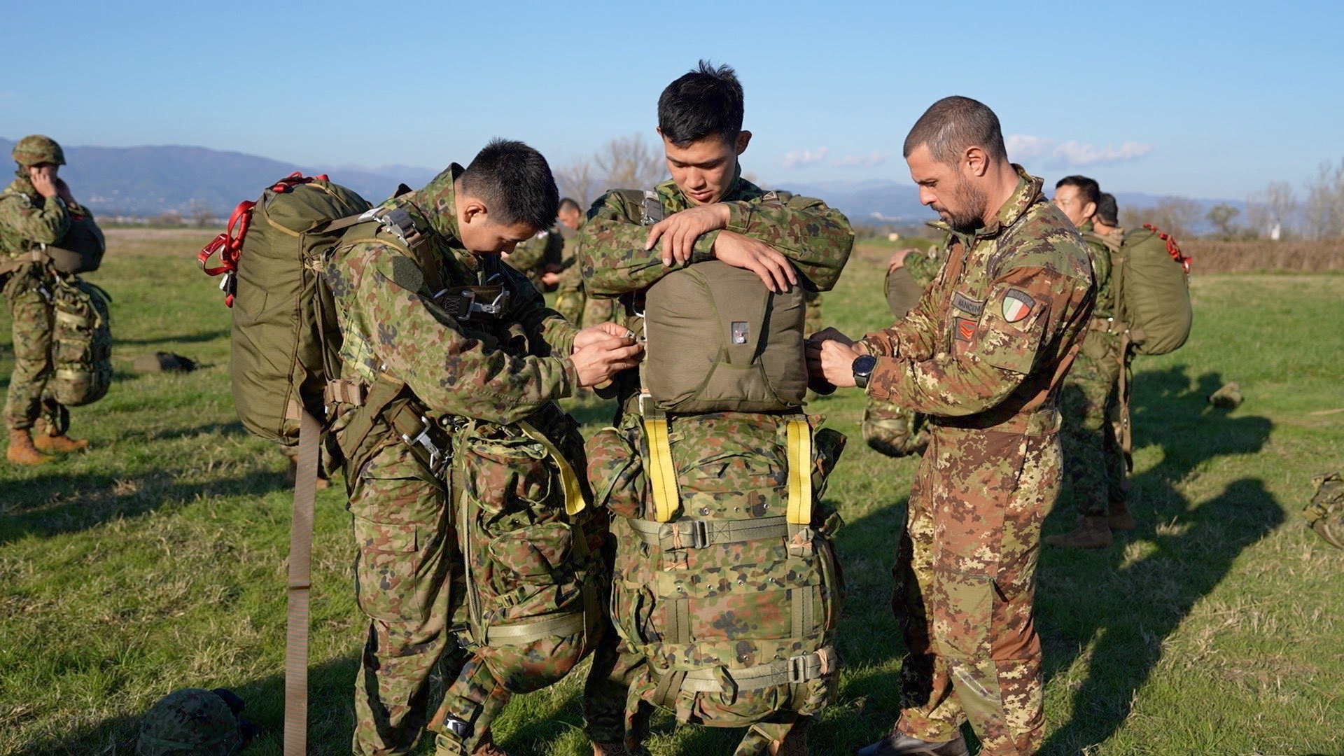 陆自第一空挺团参与意大利主办的多国伞降演习,这也是陆自首次在欧洲进行伞降训练