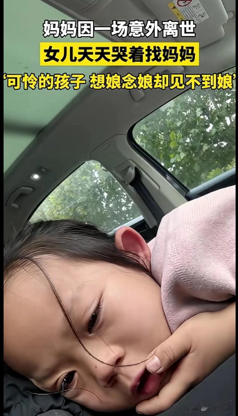 刷到这个视频,鼻子一下就酸了。 这小丫头才多大啊,妈妈意外走了,天天哭着找妈妈。你看她窝在车里那眼神,蔫蔫的,连哭都没多少劲儿,就盯着一处念叨“妈妈啥时候回来”——这孩子是把思念刻进骨头里了啊。 当妈的看不得这个,一想到她再也扑不到妈妈怀里撒娇,再也听不到睡前那声“宝贝晚安”,心都揪成一团。她爸得多难啊,一边扛着失去爱人的痛,一边还要强撑着哄孩子,可有些空缺,谁都填不上。 真希望这娃能慢慢好起来,身边的人多抱抱她、陪陪她,让她知道,妈妈的爱没走,只是换了种方式守着她。