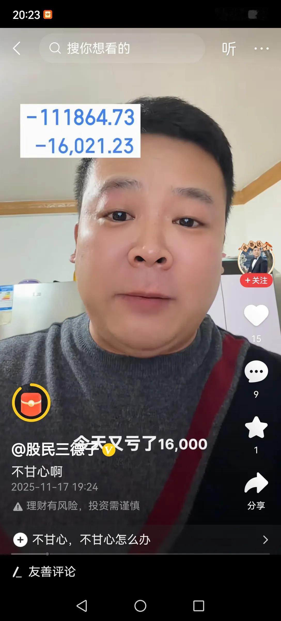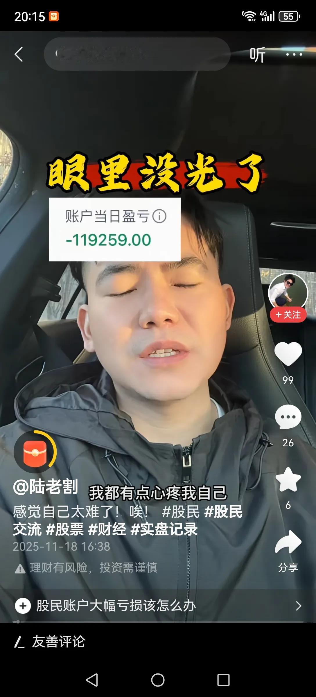 看了一下头条上好多都是炒股亏损卖惨的,也不知道是真亏还是假亏?如果发现自己不适合炒股还是尽早退出吧!决不能越陷越深。另外炒股要学会空仓,特别是在下跌势中,空仓才能保住本金,宁愿踏空,绝不深套!