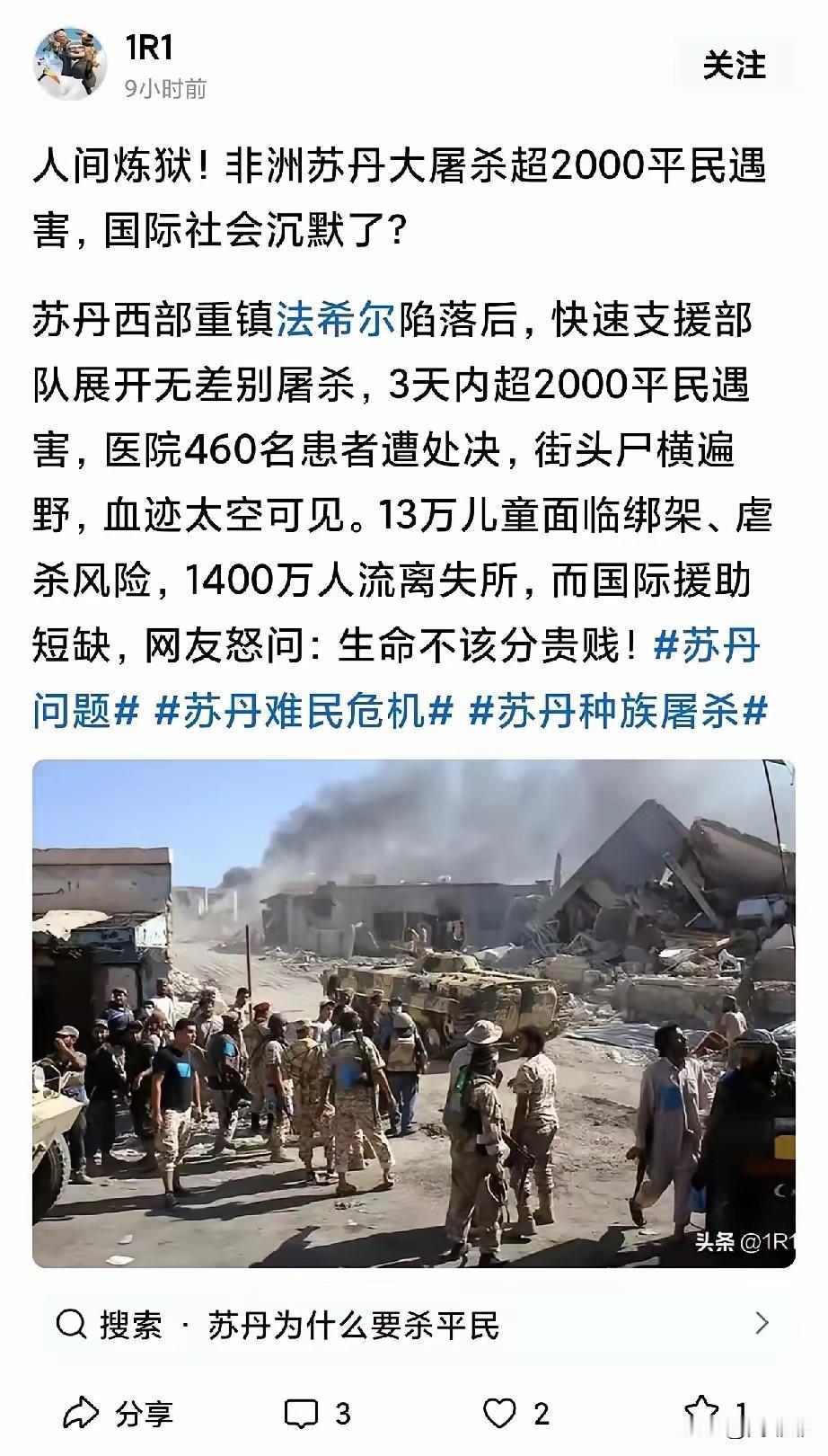 南苏丹发生21世纪以来最大的种族屠杀! 72小时 导致1.5万人惨死 真的是尸横遍野! 人类社会发展到这种如今这种程度,怎么还会发生如此灭绝人性惨剧! 不怕你们笑话,我至今连只鸡都不敢杀[捂脸] 我吃鸡都是去菜市场别人杀好的!