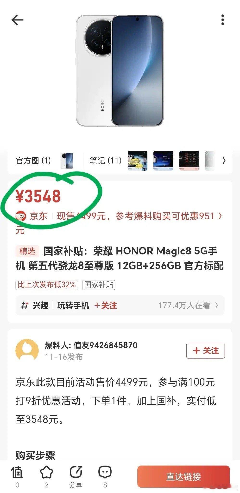 有网友爆料现在荣耀Magic8竟然只要3500多,说真的这个价格能拿下还要啥自行