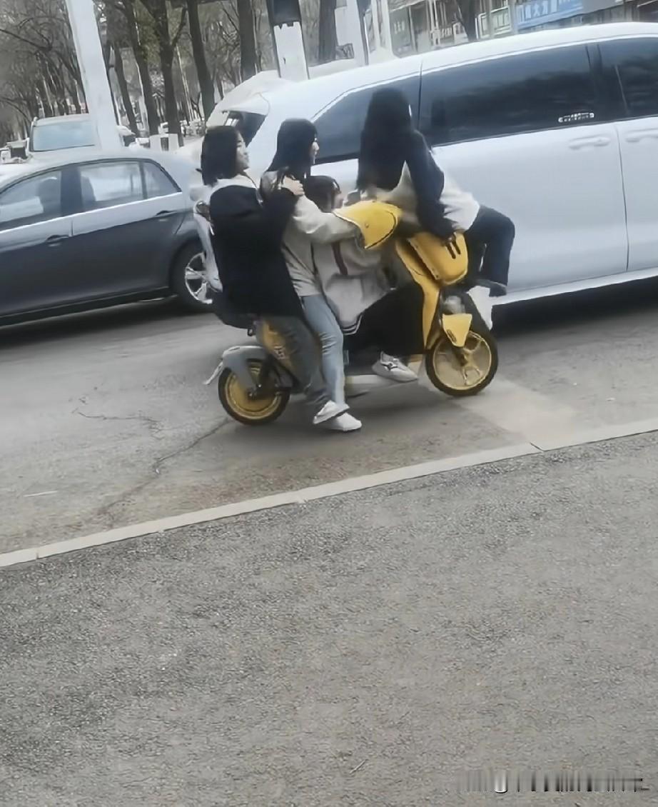 早知道烂厂里,也不遭这罪!4个女生虐待 这离谱画面:一辆小黄电动车被4个女生“叠罗汉”似的塞满了——有人坐踏板、有人扒后座,连骑的人都快被挤得看不见车把了,在车流里晃得人心惊肉跳。 评论区直接炸:有人骂“这是拿命博眼球”,有人吐槽“小黄车看了都想自毁”,还有人说“现在年轻人为了玩啥都敢干”。 但我想问:这种“玩命式整活”,到底是“青春无畏”还是“没数儿作死”?要是你路过看到,会上去劝吗?评论区来辩!