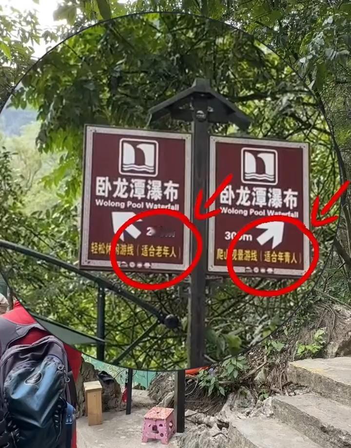 是这个景区指示牌搞错了么,为何左边都是人,右边却没人?