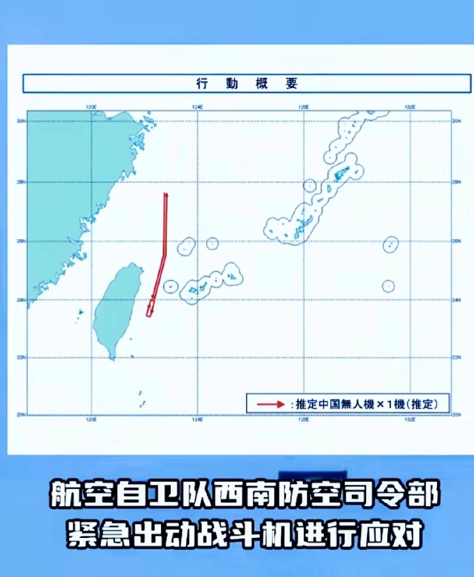 日本自卫队已派出战斗机飞往台湾以东海域,日方胆敢武力介入台海,中方必将迎头痛击! 11月15日一架疑似中国无人机,在属于琉球群岛的与那国岛和中国台湾地区之间的海域飞行。他们能及时发现,说明他们的信息也够发达,不可轻敌,我们一定要做好战斗准备!真正打仗了好多鬼子潜伏在人群中,相信,过两天解放军也会把飞机开过去溜达溜达。