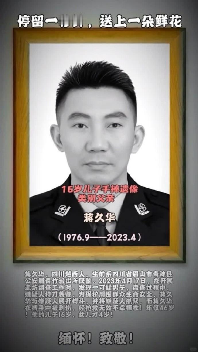 在四川的街头,一位英勇的民警——蒋久华,与持刀嫌疑人展开搏斗。在这场生死较量中,他以血肉之躯捍卫了法律的尊严,保护了人民的生命安全。他的牺牲,是警徽上最沉痛的印记,也是对正义最深刻的诠释。让我们铭记这位平凡而伟大的英雄,他的名字将永远镌刻在四川公安的光辉史册中。