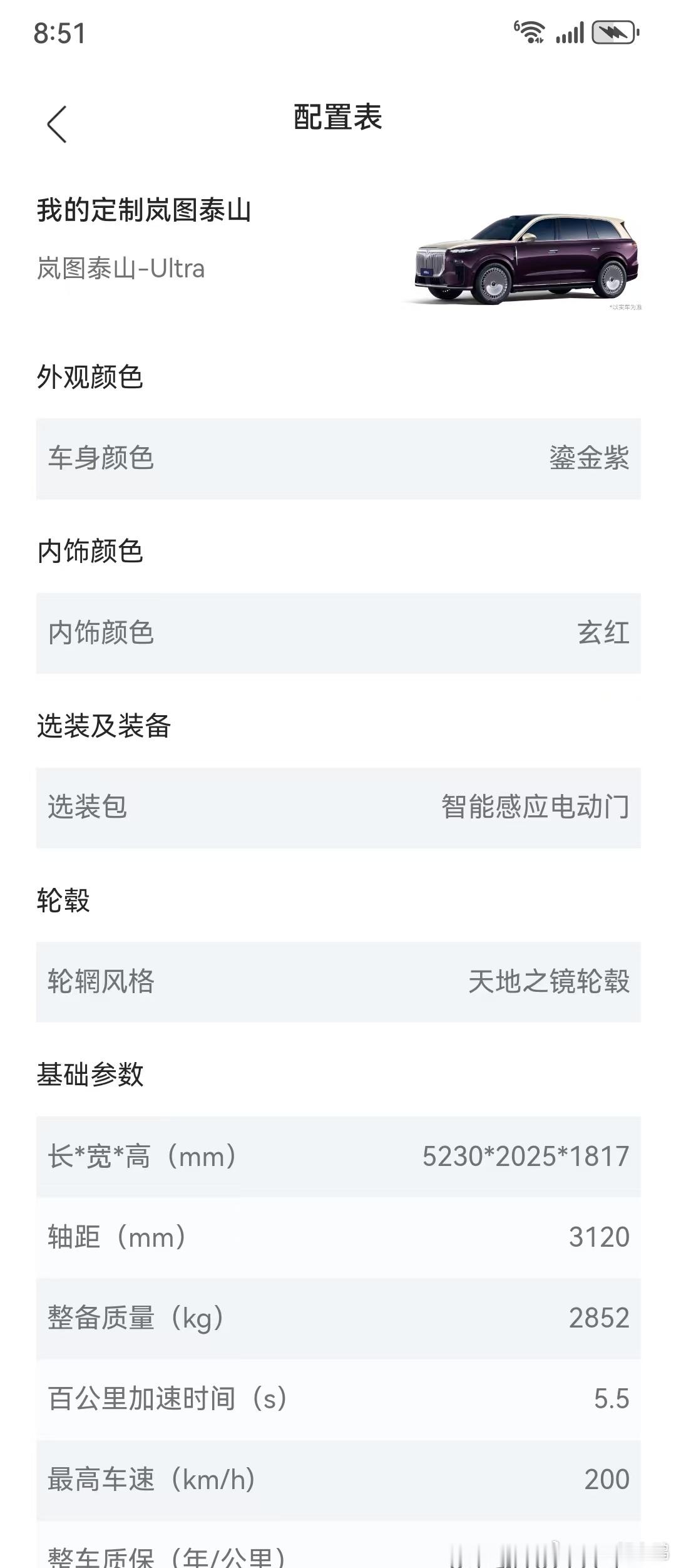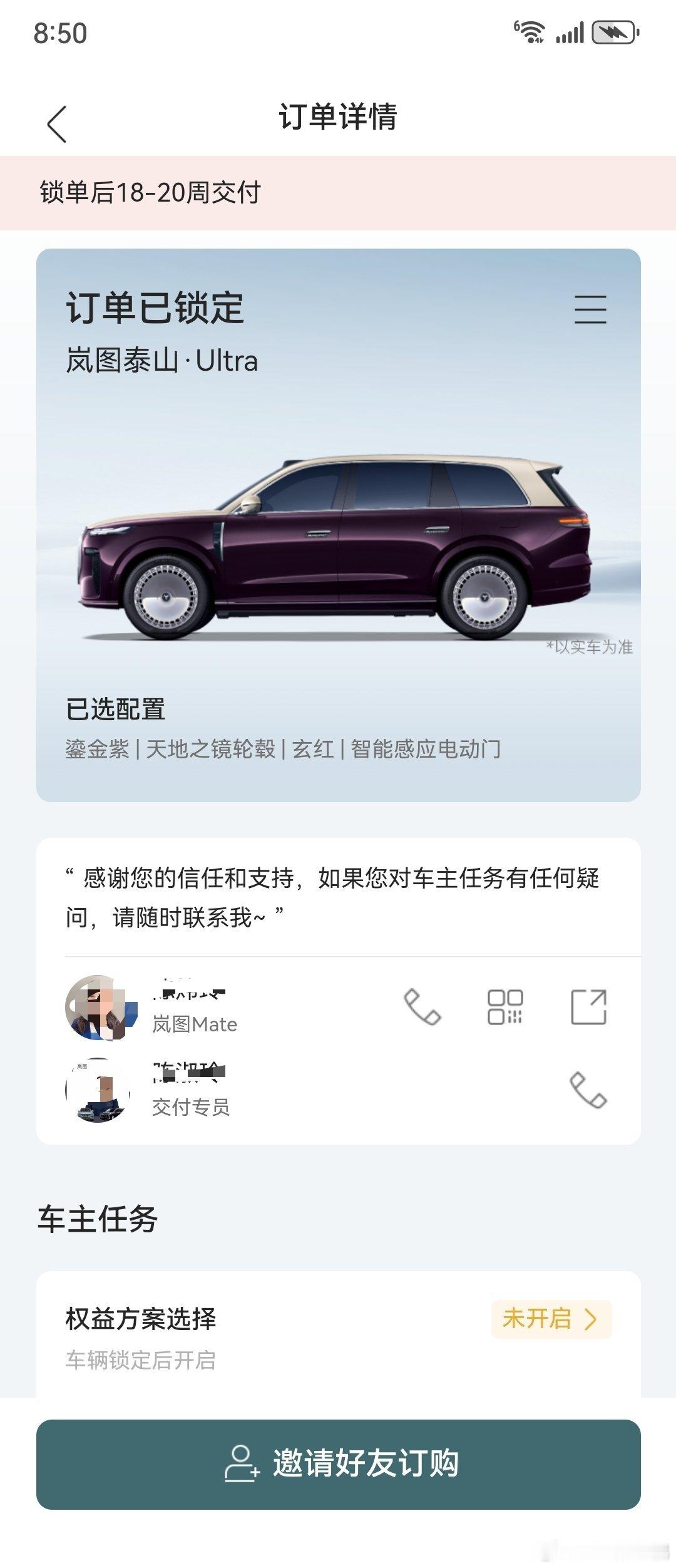 锁单啦。颜色还是选了紫金双拼,加1万选大饼轮圈,红内…没错就和我拍车评那台车一模一样,大家商量后觉得这应该是效果最有保证的颜色版本必须是ultra,大家都想体验华为4激光雷达(包括一颗最新500+线激光雷达)的表现问题是这个版本要明年1月才提车,不争朝夕,只图最好,等吧