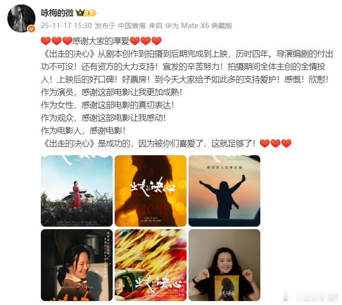 咏梅好用心啊,连用四个“作为”四个“感谢”来表达对《出走的决心》和观众的喜爱