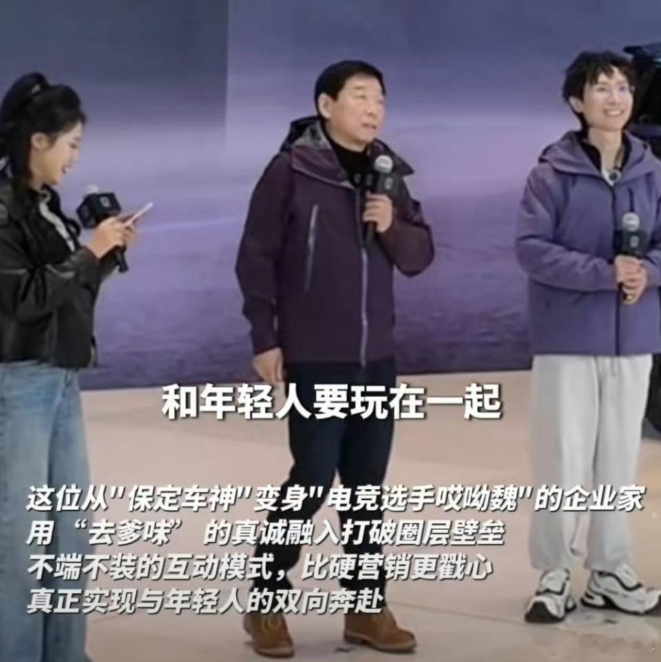 别的老板还在会议室里讲PPT,他已经坐在《王者荣耀》决赛现场和年轻人一起嗨了;别的品牌还在硬灌广告,他直接下场挑战电竞、玩攀岩,亲手把车钥匙交到选手手里。从“保定车神”到“电竞选手哎呦魏”,没有高高在上的说教,只有真诚平等的互动。这种“去爹味”的沟通,年轻人当然买账!品牌年轻化,从来不是换个logo那么简单。像这样放下身段,真心融入,才是真的懂年轻人。