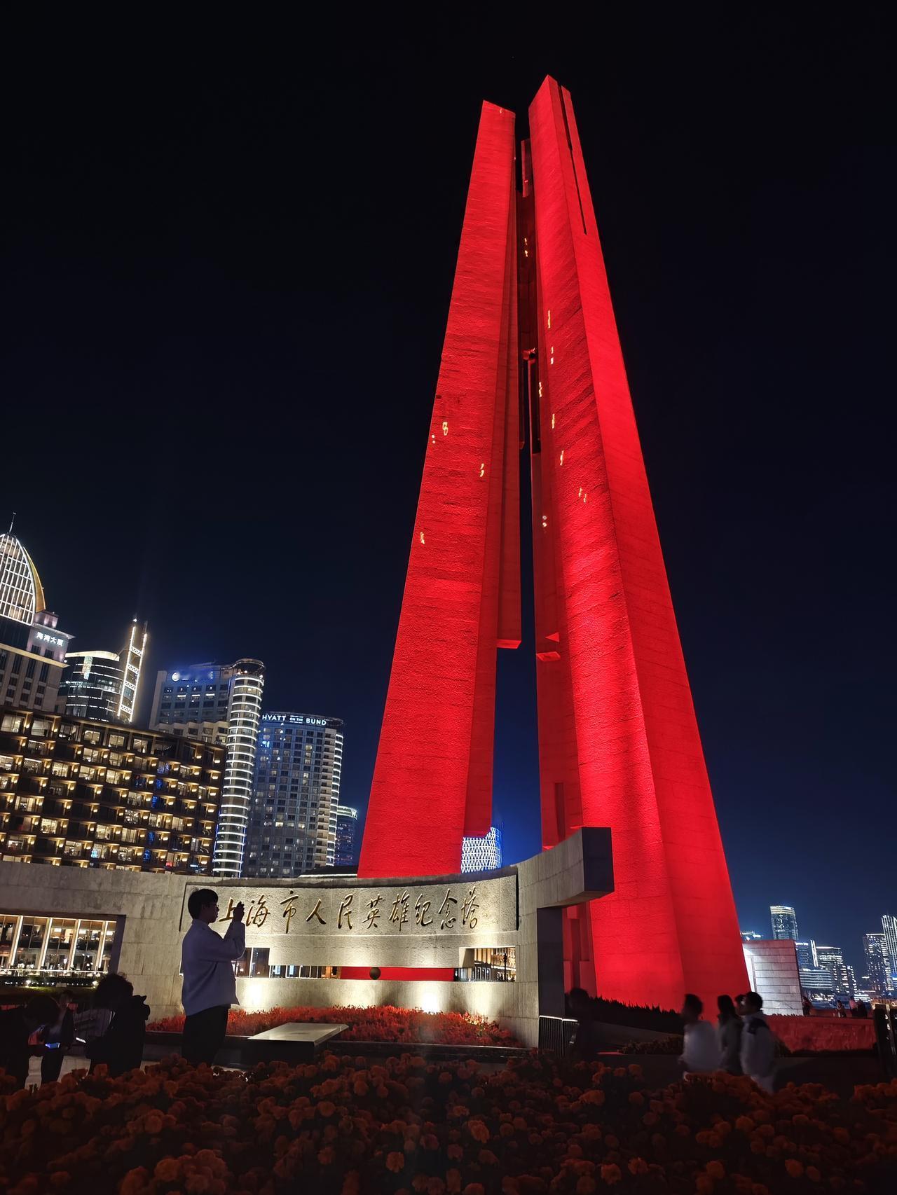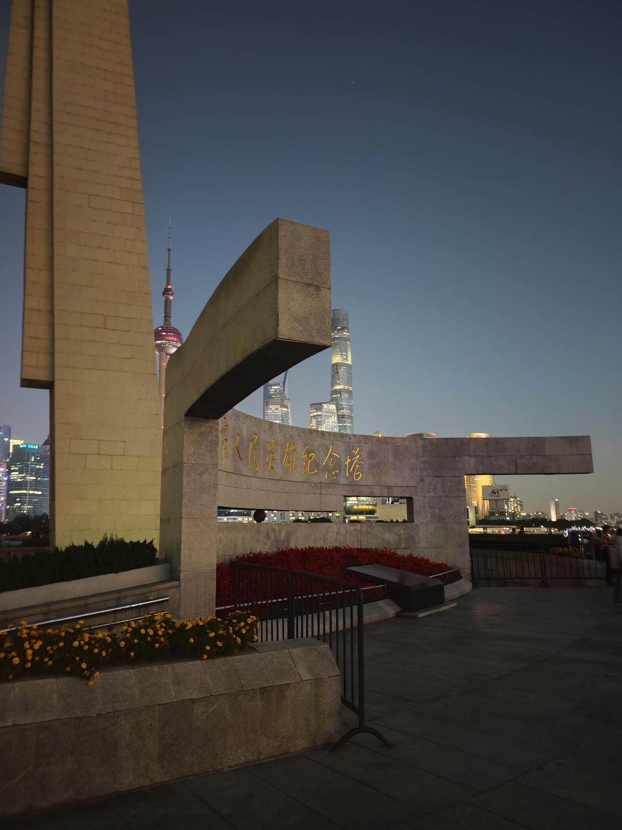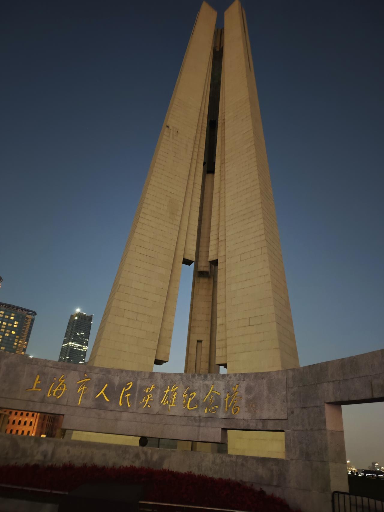 来到上海外滩最让我肃然起敬的还是上海市人民英雄纪念塔!毕竟现在我们美好幸福的生活全靠这些英雄们用鲜血换来的,他们永远活在人们的心中! 上海市人民英雄纪念塔于1993年建成,由三根60米高的擎天巨柱组成,象征着自1840年以来为解放上海献身的先烈永垂不朽。 上海市人民英雄纪念塔的主体寓意着鸦片战争、五四运动、解放战争,在纪念塔的下沉广场还镌刻百年革命史,也是爱国主义教育基地。