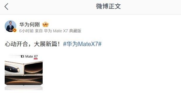 【华为何刚微博小尾巴更新,MateX7折叠屏旗舰手机典藏版确认】华为Mat