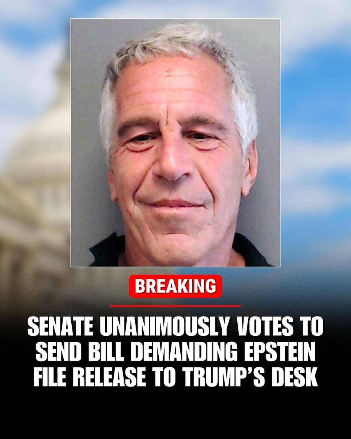 强制司法部长邦迪公开所有关于杰弗里·爱泼斯坦的档案的法案已在美国国会两院获得通过,并将提交给特朗普签署。 众议院以427-1票投票结果通过,只有一个共和党议员反对,之后,法案送到参议院,在参议院也迅速获得一致投票通过。