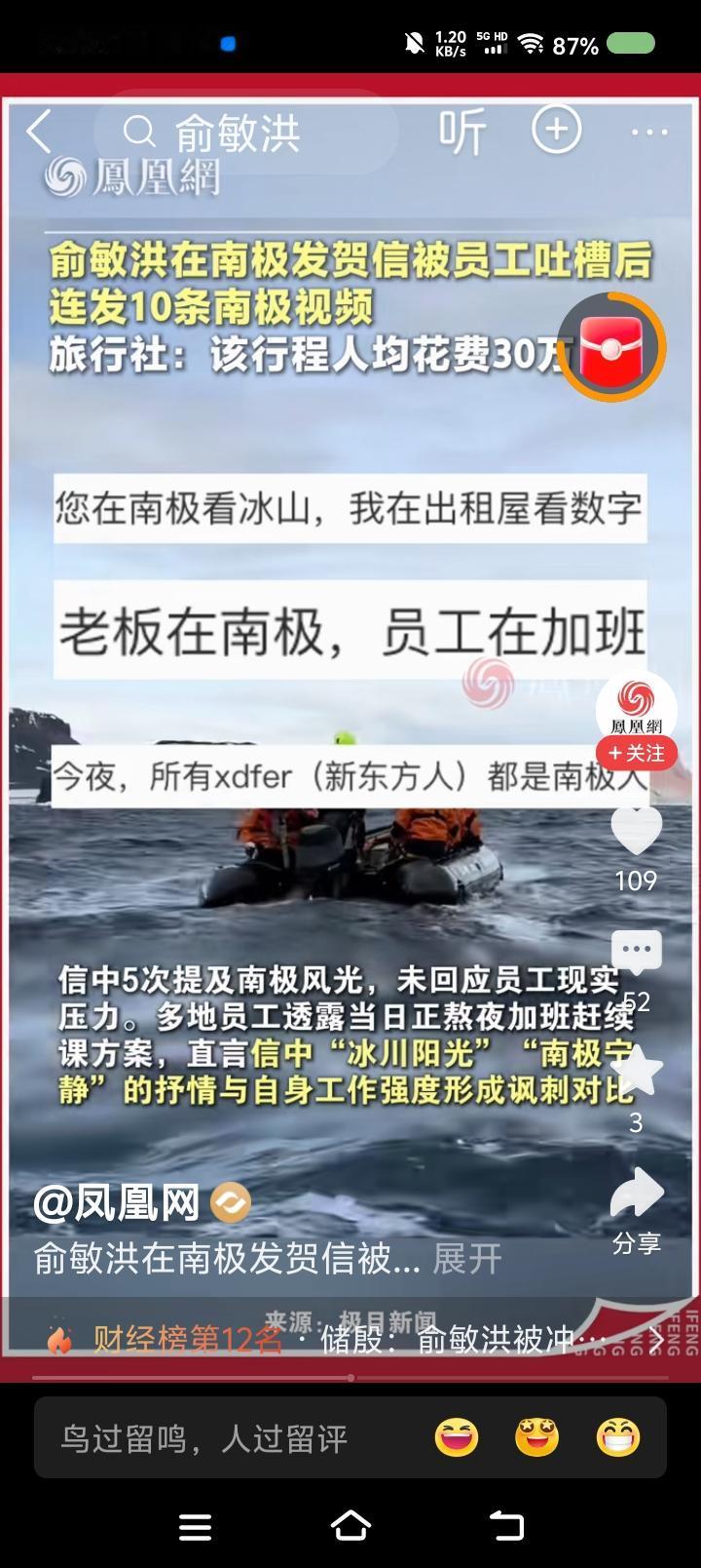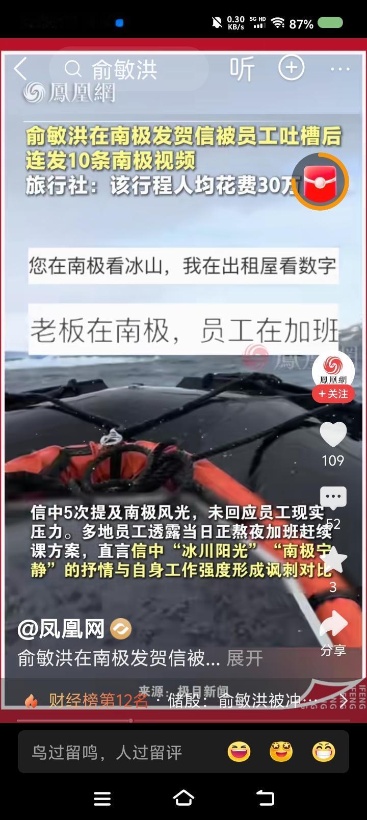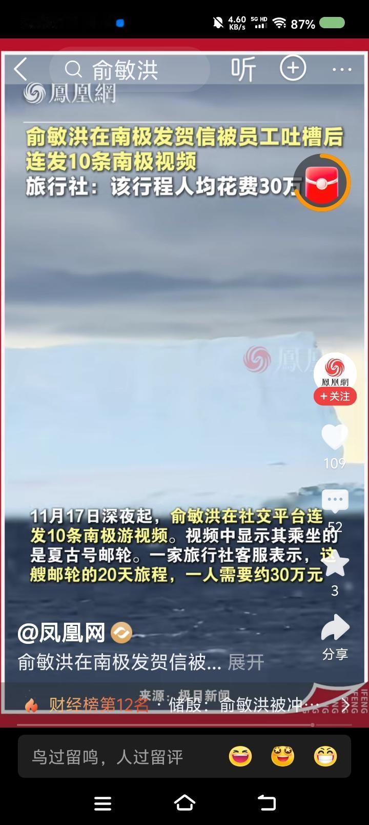 旅行社为什么透露俞敏洪的消费信息?—— 据报道,近日,俞敏洪等人在南极旅行,公司成立周年当天俞老师写公开信,勉励员工,引发争议。有员工和众网友认为,此举无法共情,甚至有点讽刺。 旅行社透露,该行程人均花费约30万元。 点评: 一、如何看俞老师的行为,昨天已写头条评论。 二、旅行社透露消费者信息,想干什么?明知道会引起风波,依旧如此?为了打广告?