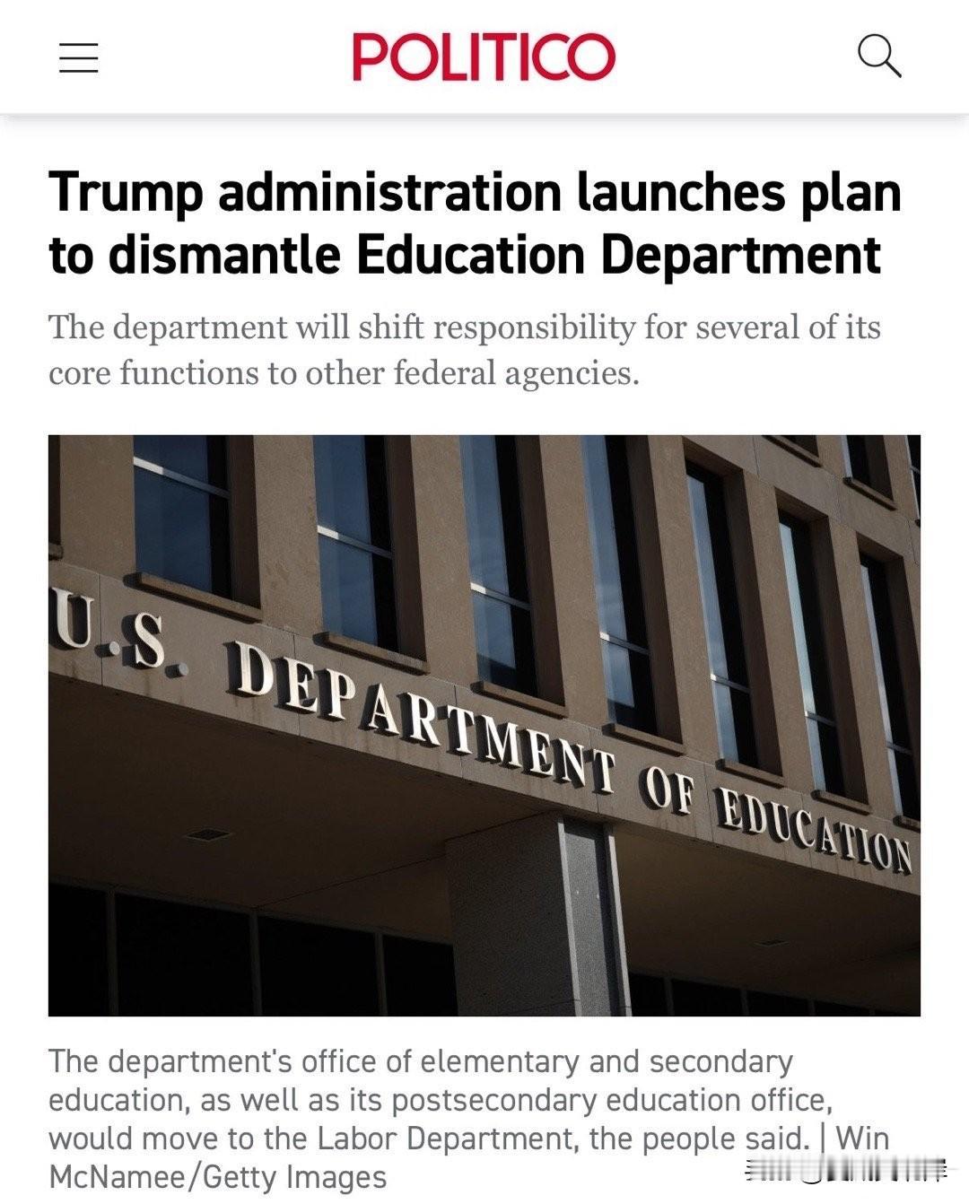川普政府启动废除教育部的计划,该部门将把部分核心职能转交给其他联邦机构 据美国教育部消息,其基础教育办公室和高等教育办公室将划归劳工部管理。